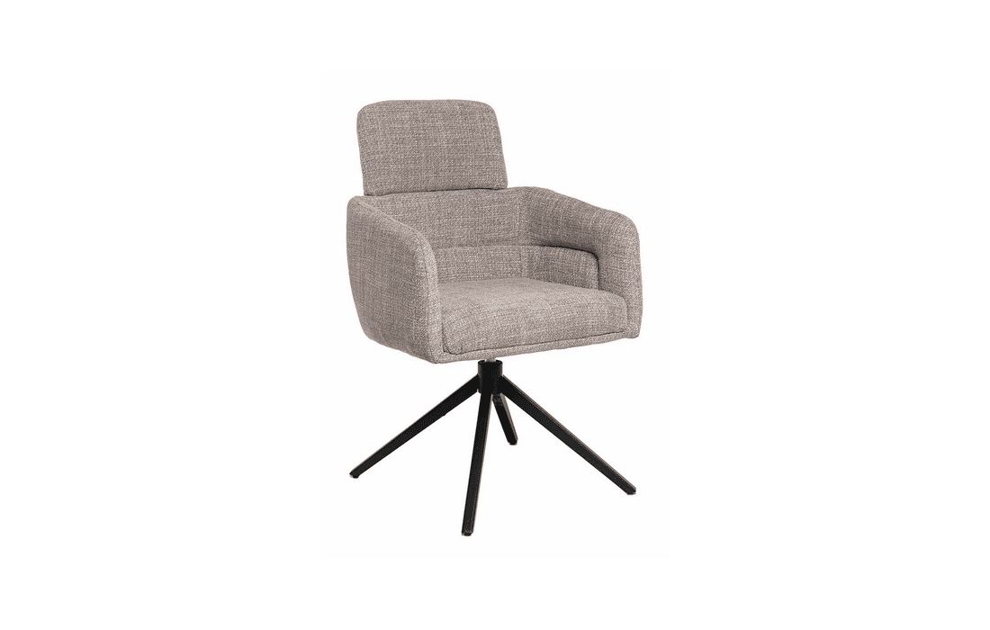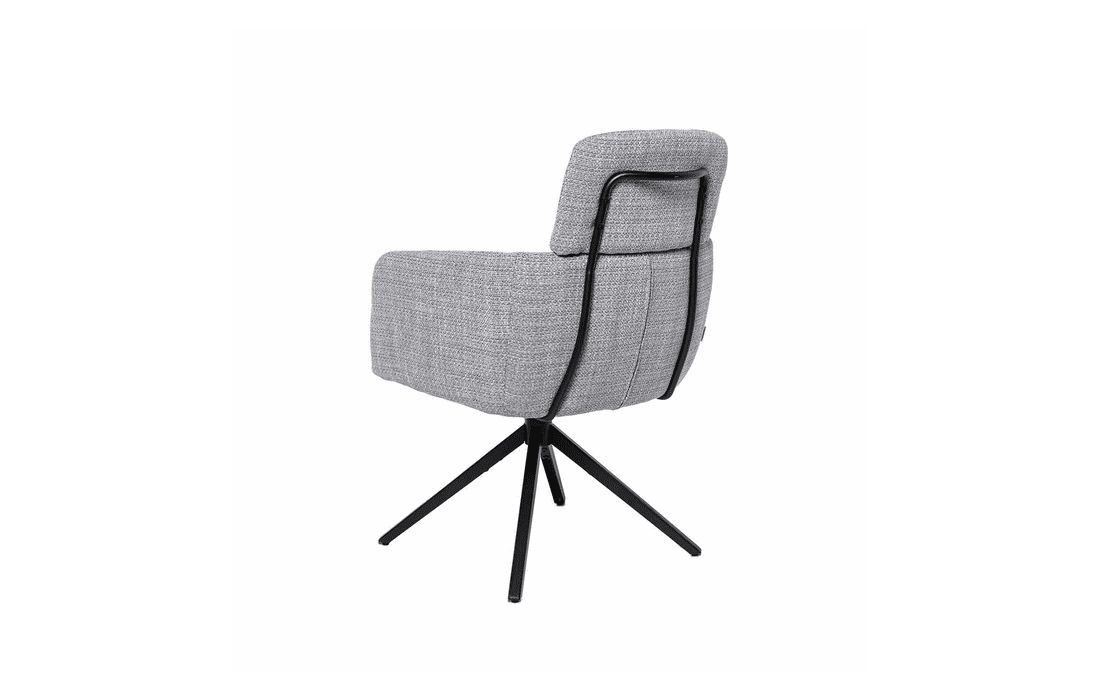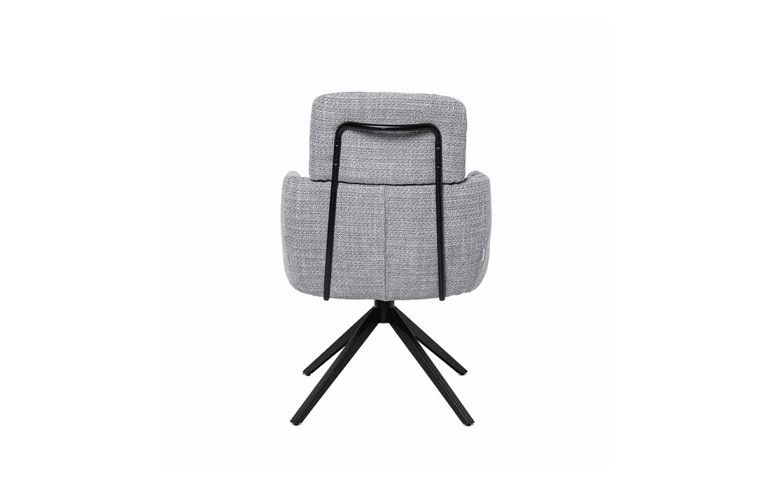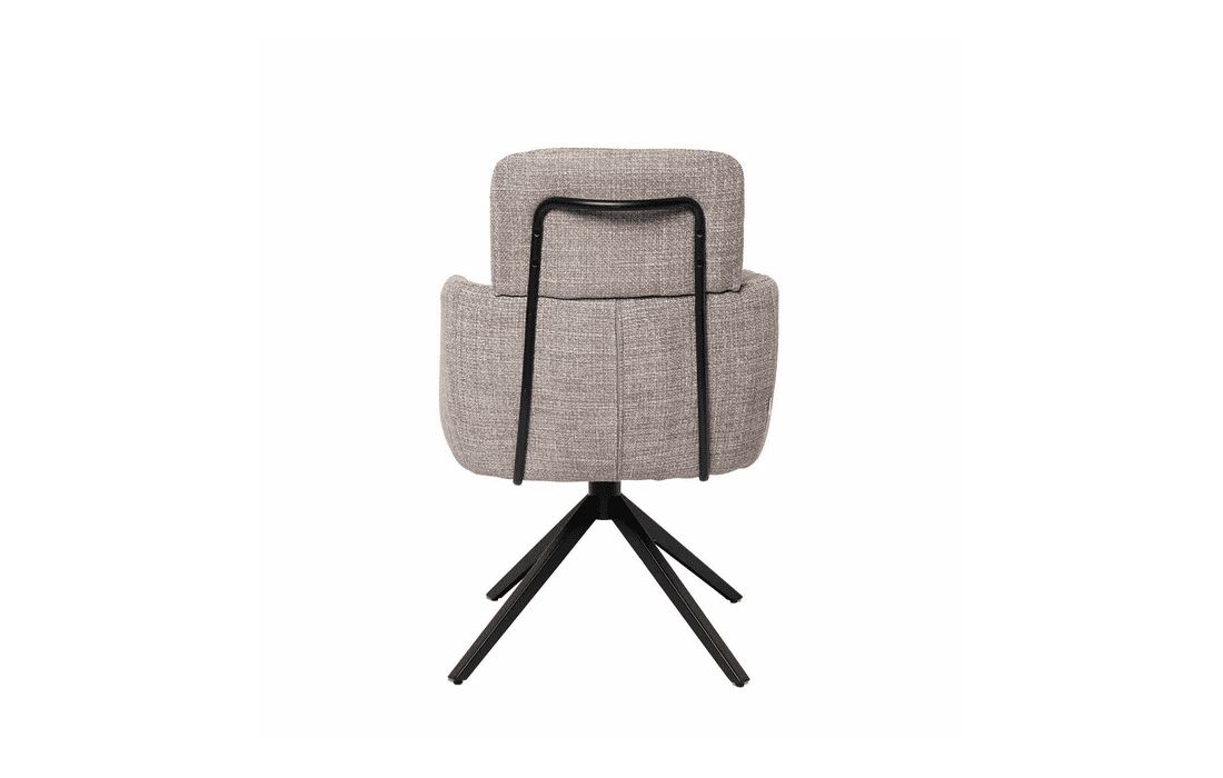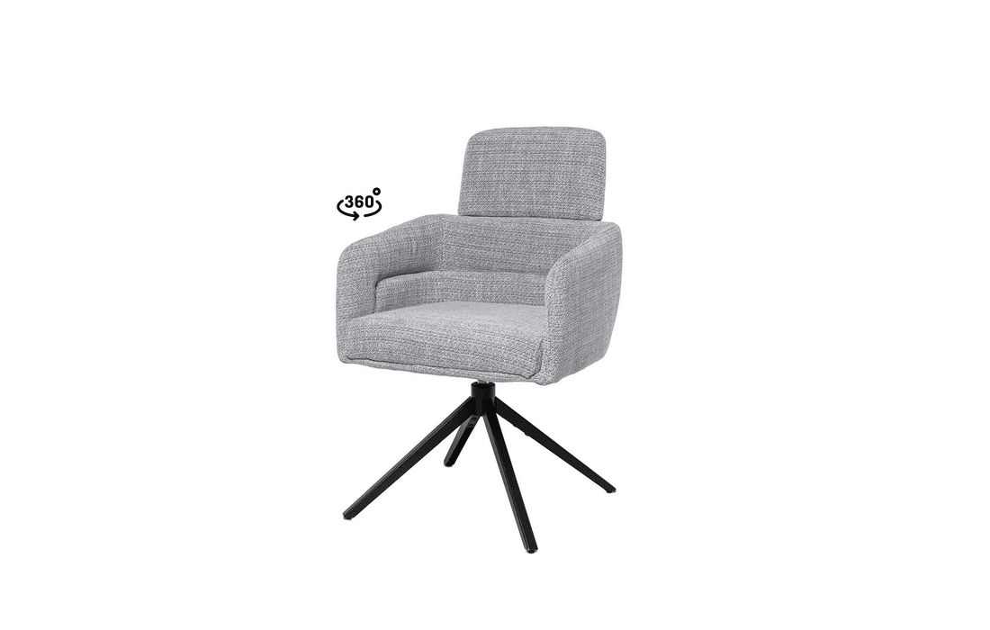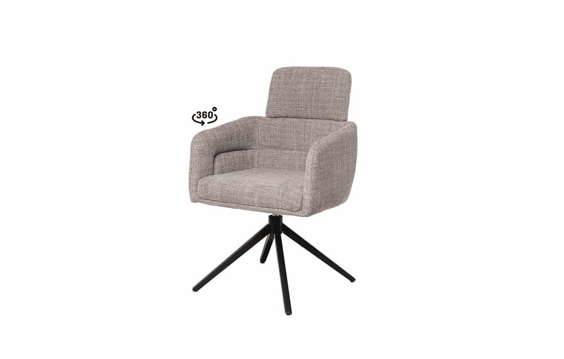 This chair combines design, comfort, and functionality in a unique and versatile piece. It features a 360º rotation mechanism with an automatic return function. Available in light gray, dark gray, beige, and taupe.