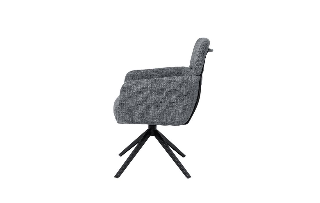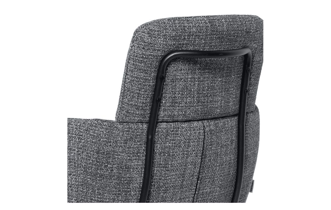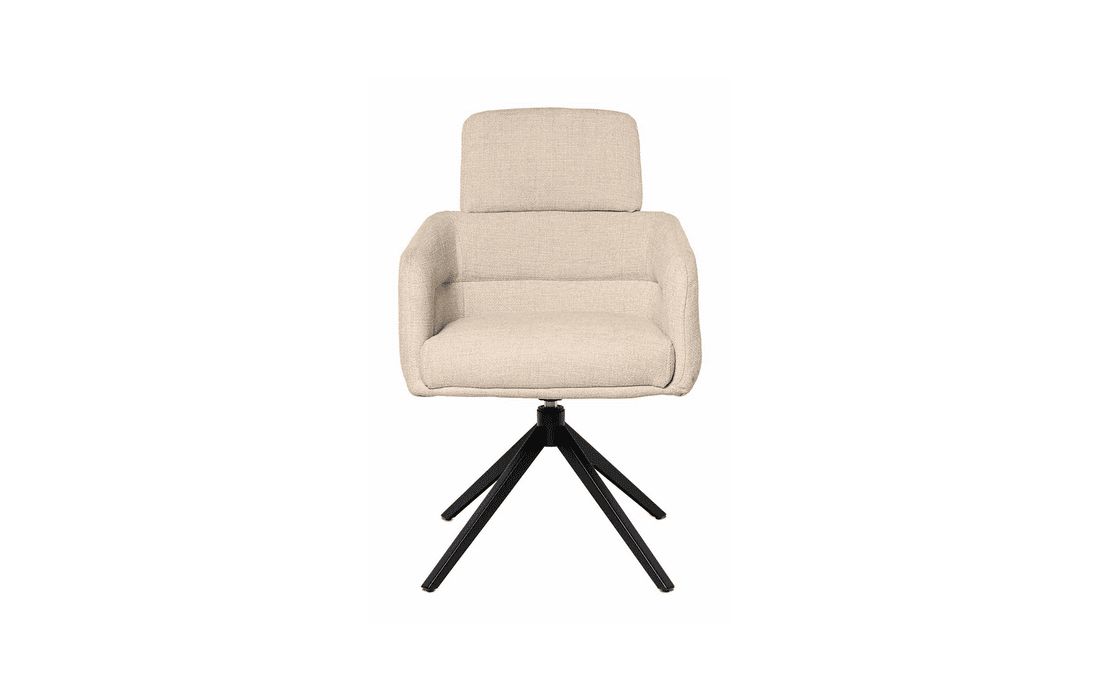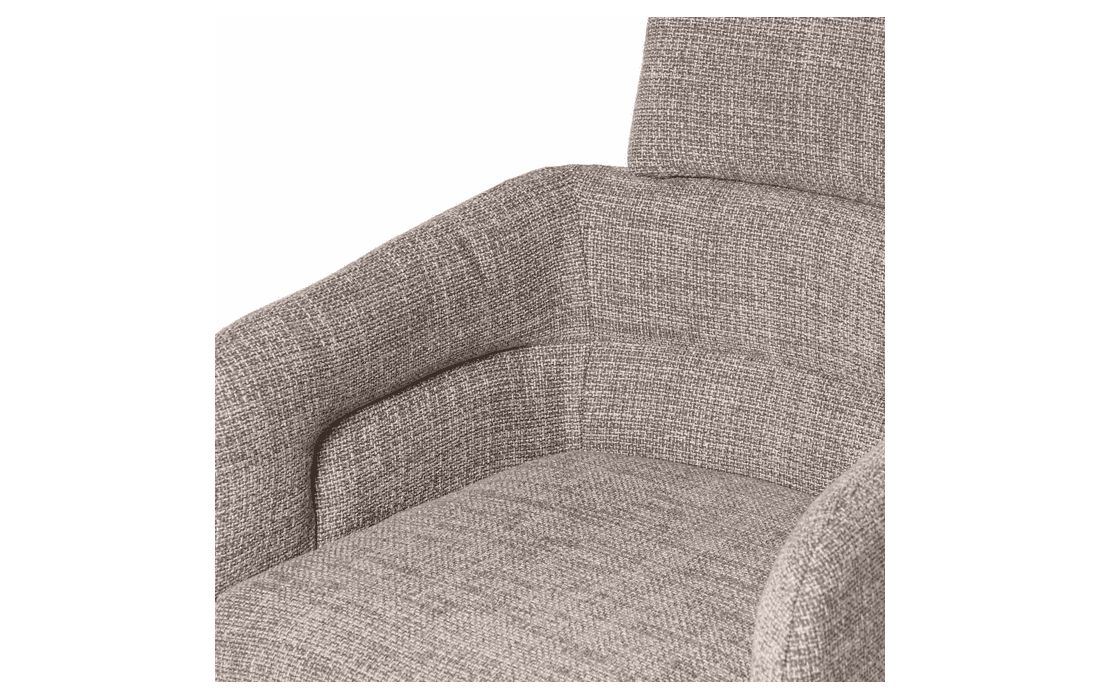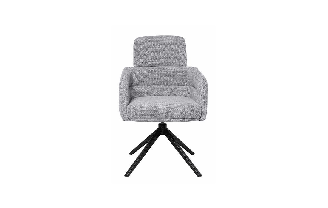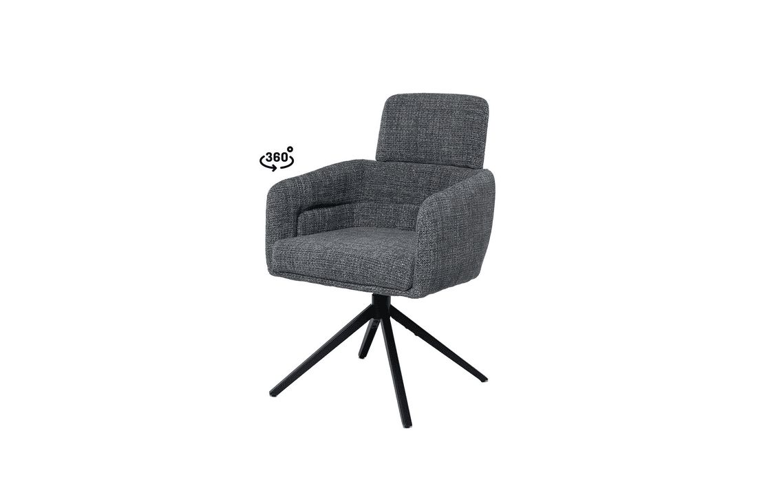 This chair combines design, comfort, and functionality in a unique and versatile piece. It features a 360º rotation mechanism with an automatic return function. Available in light gray, dark gray, beige, and taupe.