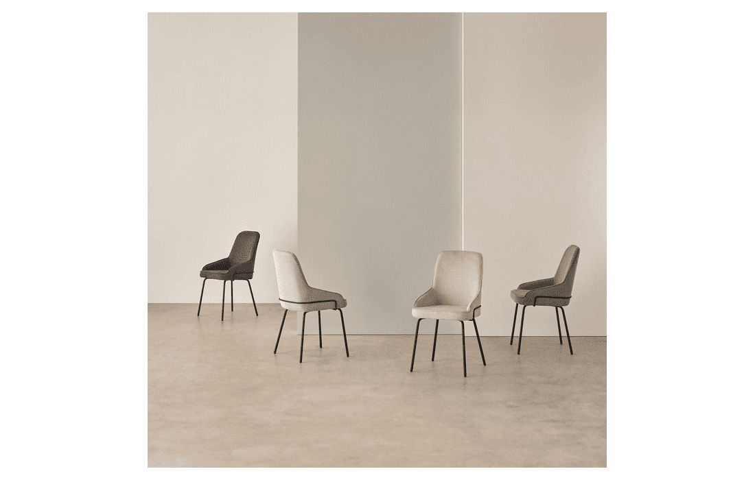 Elegant chair with a high backrest and padded frame, designed for maximum comfort. It also features armrests, providing ergonomic support for the arms. Available in light gray, dark gray, beige, and taupe.