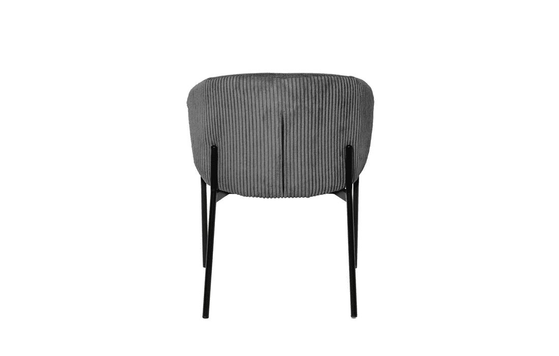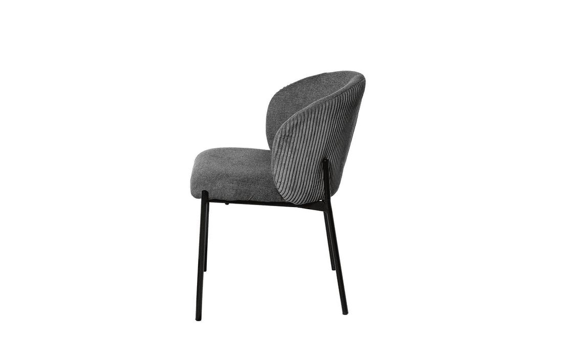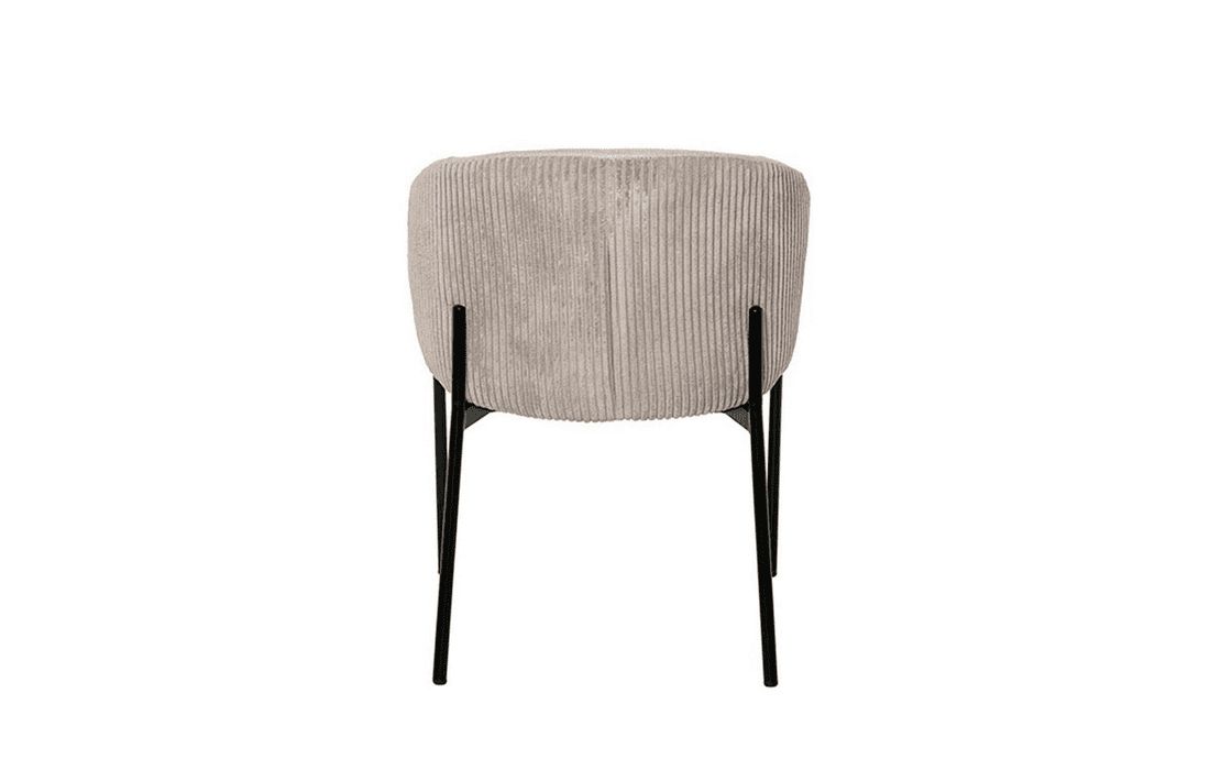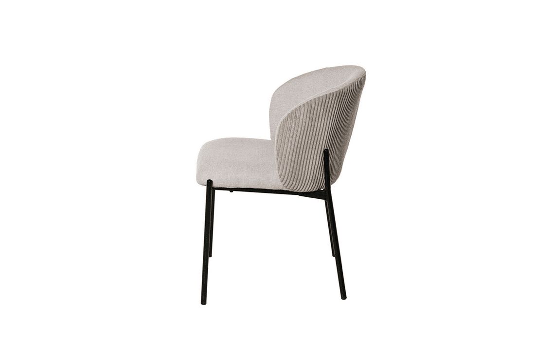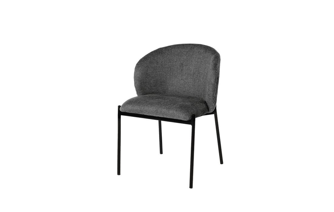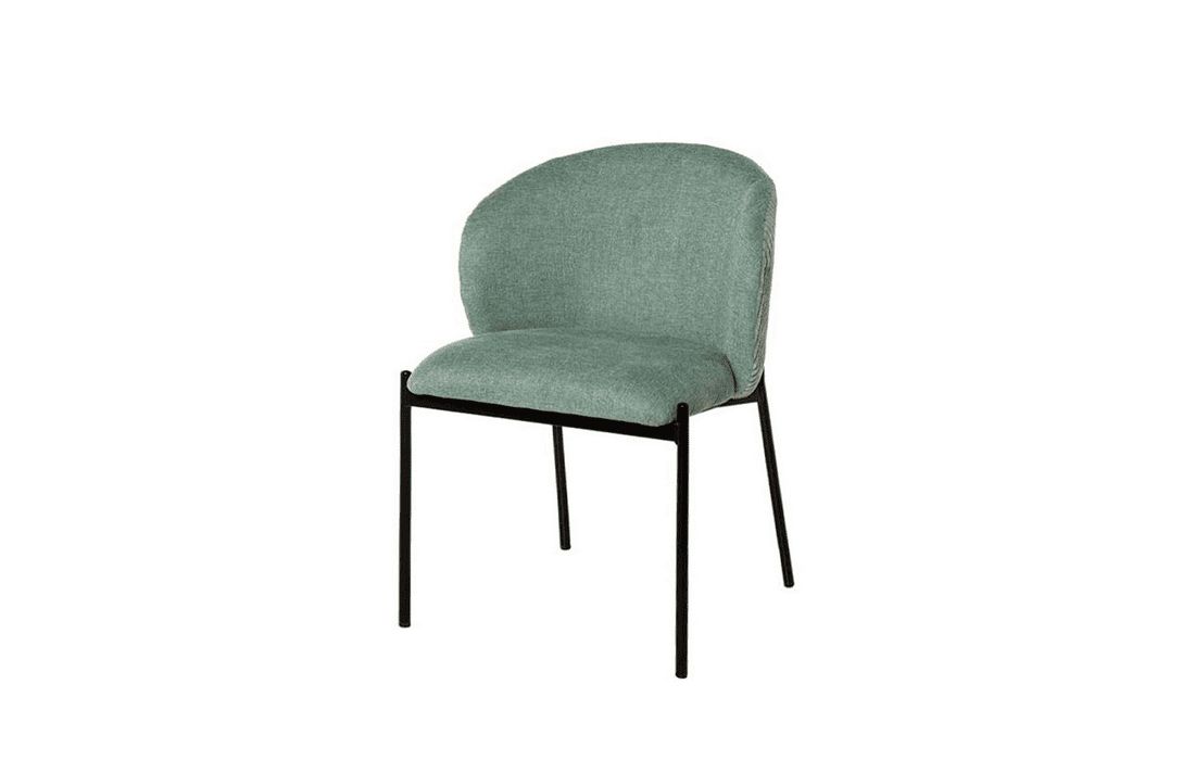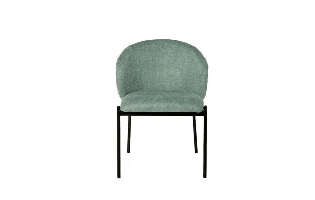 Its wide, slightly concave backrest provides comfortable support. In addition, the metal legs contrast with the rest of the chair, giving it a sophisticated look. Available in light gray, dark gray, beige, and mint.