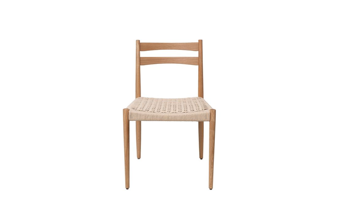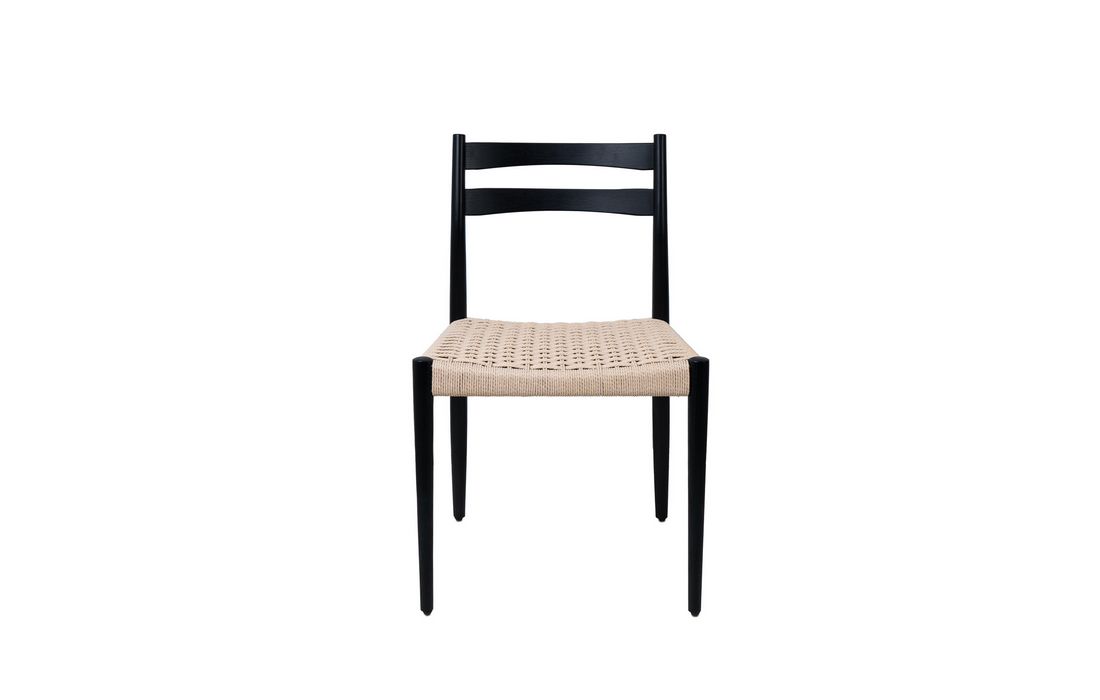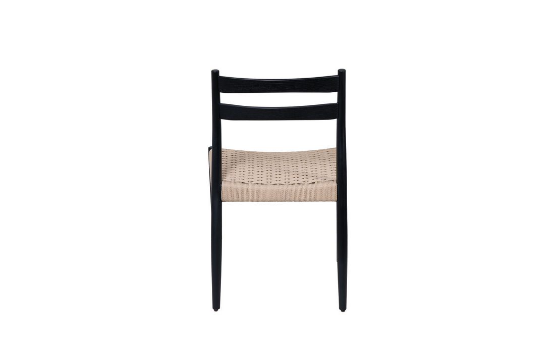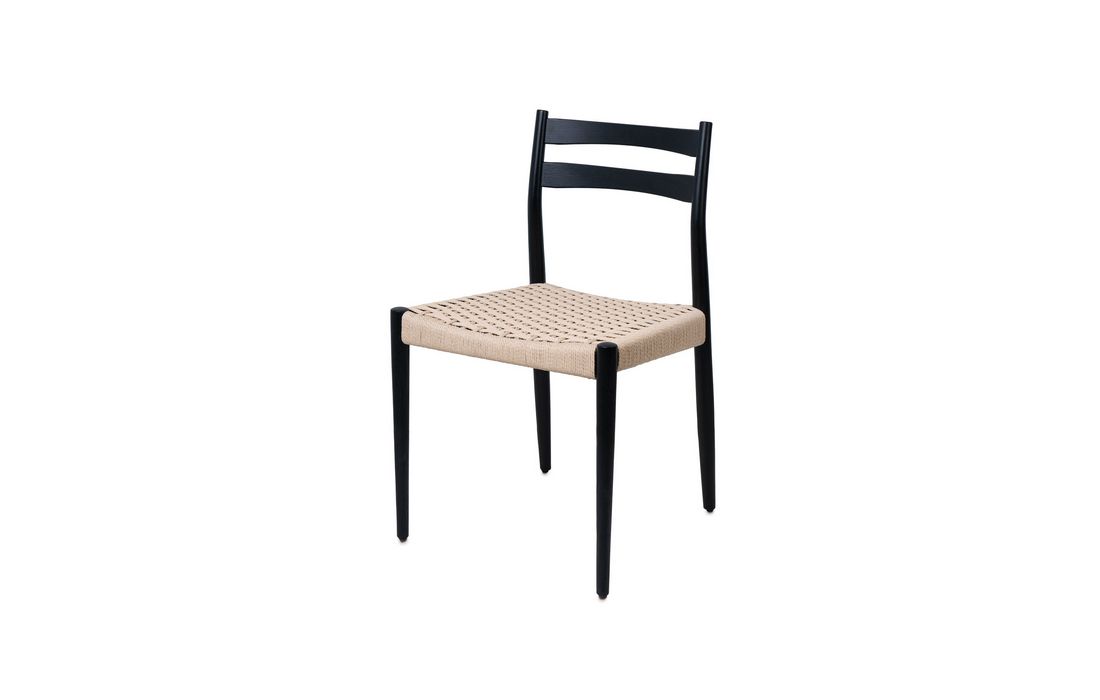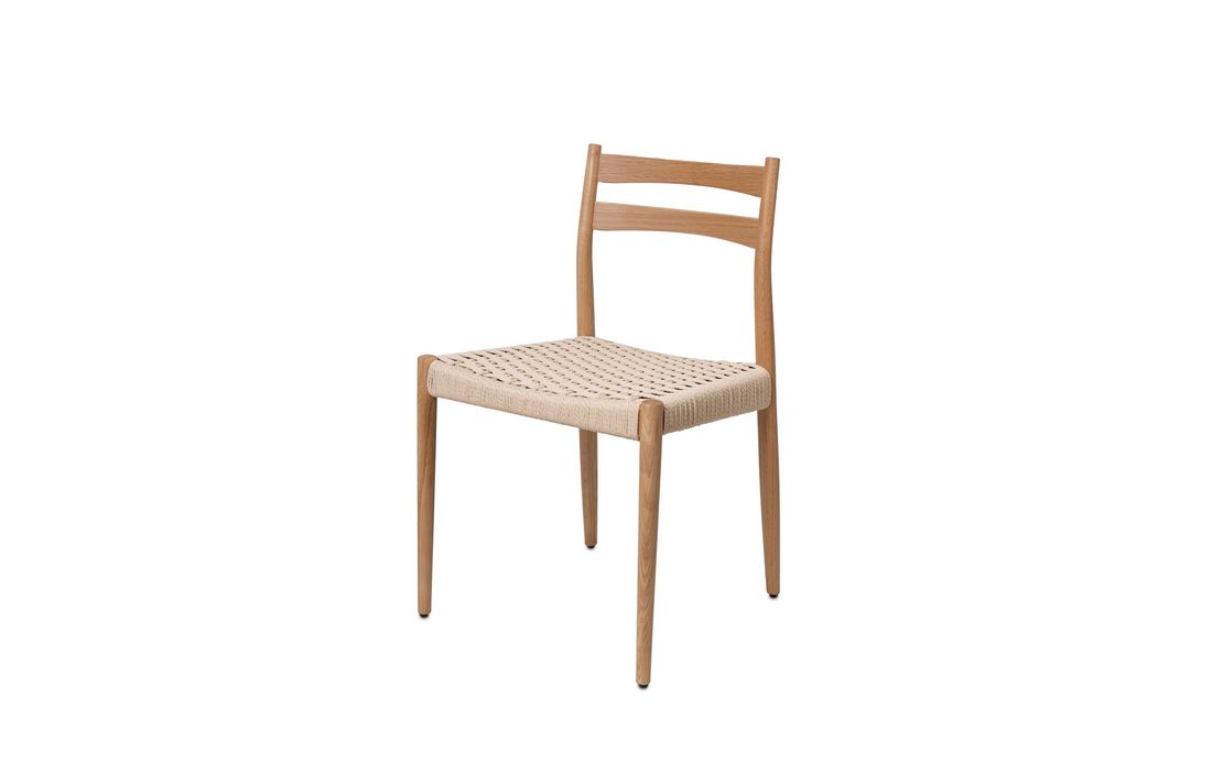 This chair stands out for its natural and sophisticated design, ideal for homes seeking a minimalist and organic decorative approach. Its frame is made of oak, available in black lacquered oak and in a natural tone.