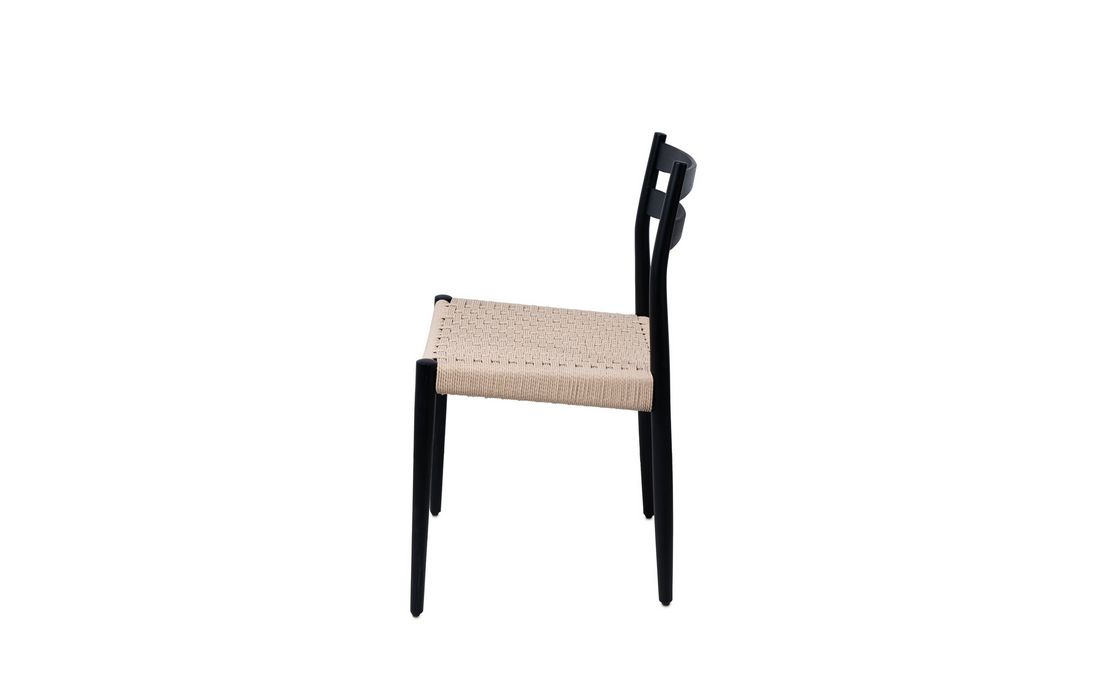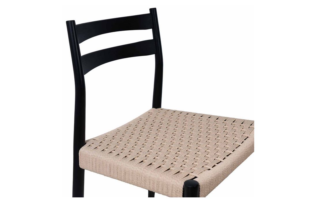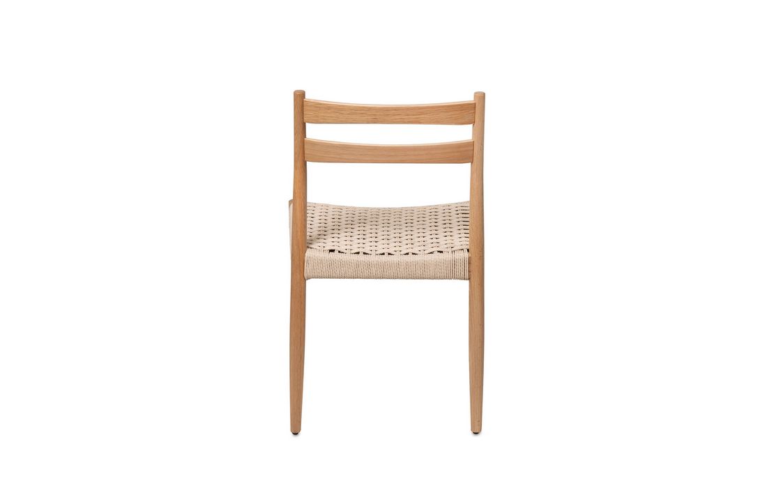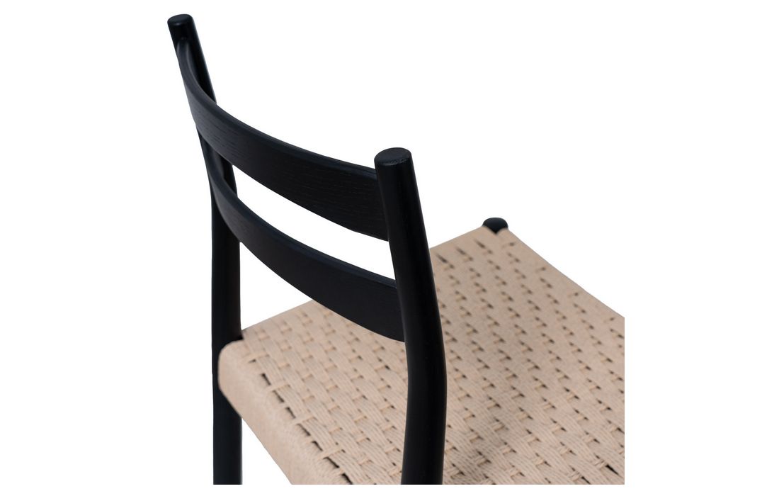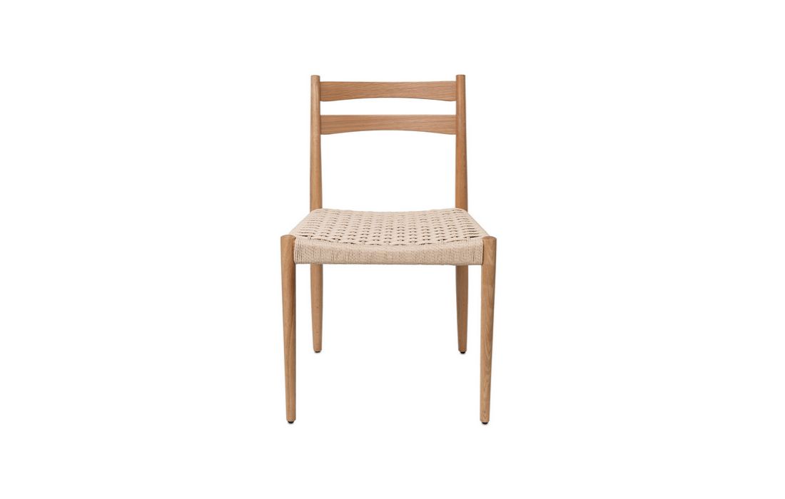 This chair stands out for its natural and sophisticated design, ideal for homes seeking a minimalist and organic decorative approach. Its frame is made of oak, available in black lacquered oak and in a natural tone.