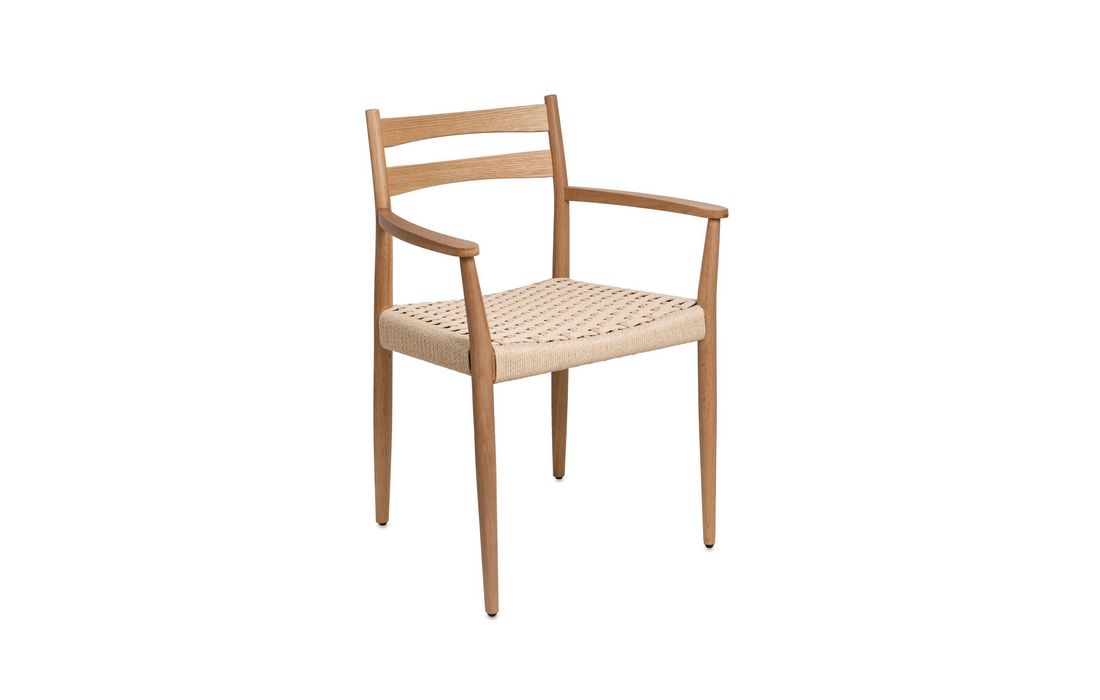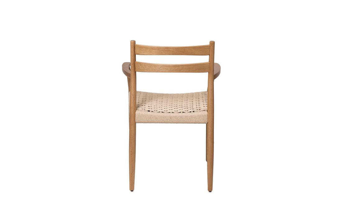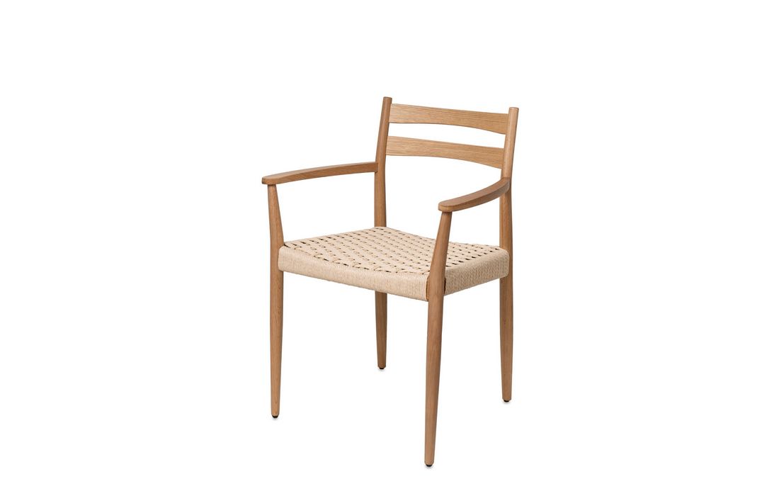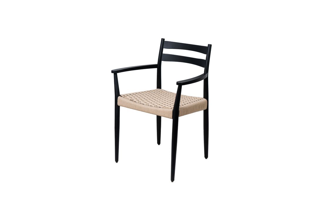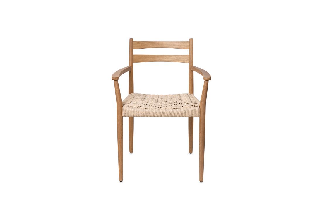 This chair combines the essence of Scandinavian design with a handcrafted touch, achieving a balance between sophistication and naturalness. Its frame is made of oak, available in black lacquered oak and in a natural tone.