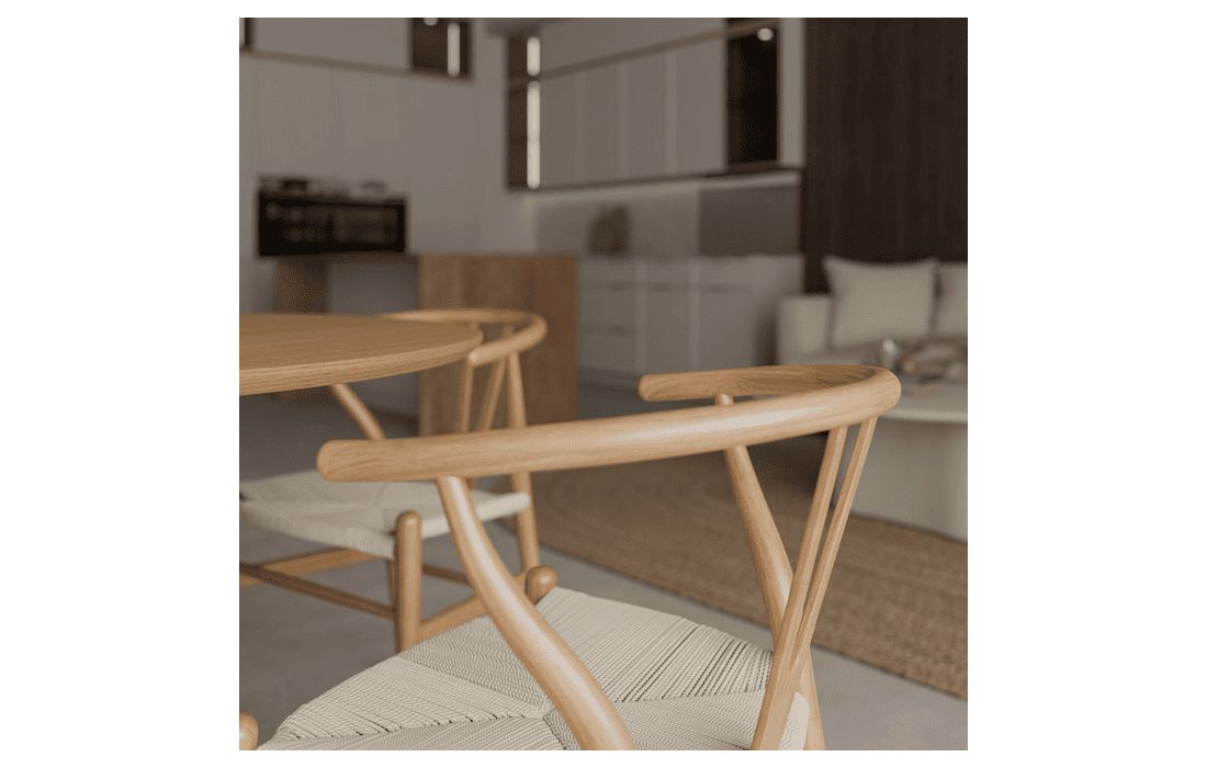 This beech wood chair features an original and attractive design that complements any decorating style, from modern to Nordic and vintage. Available in natural tone, in black tone with black rope seat and natural.