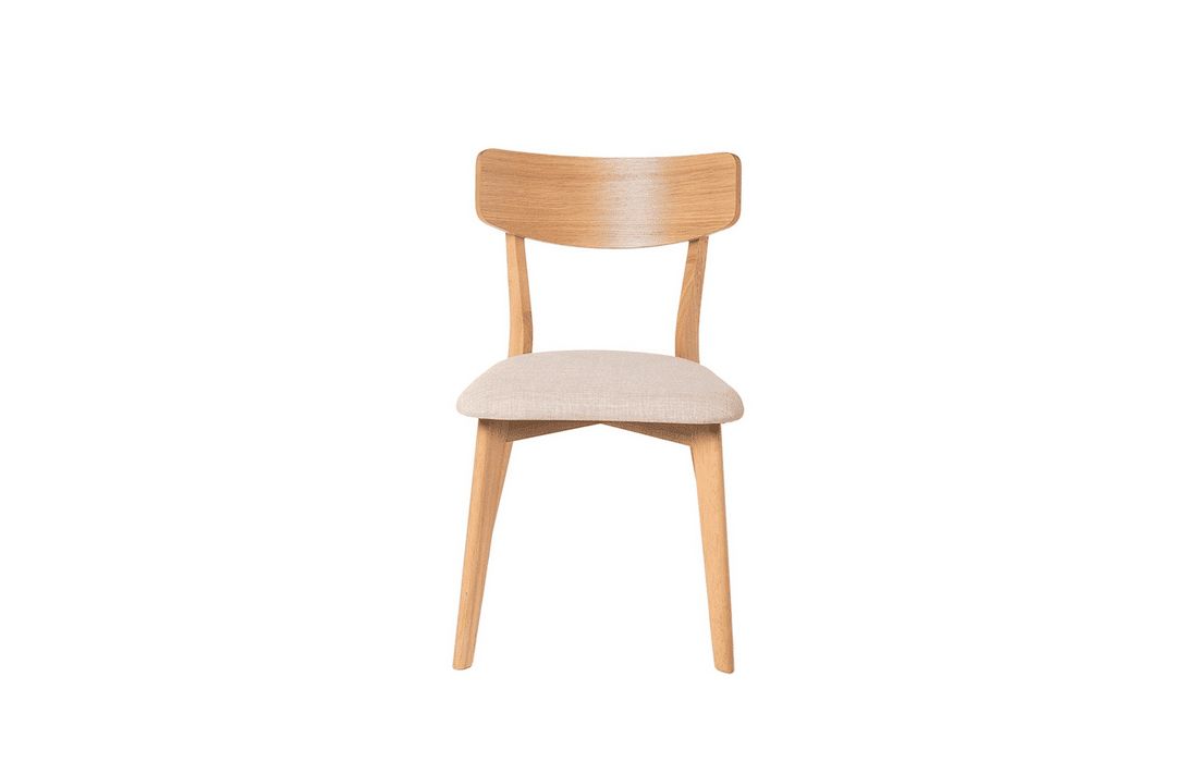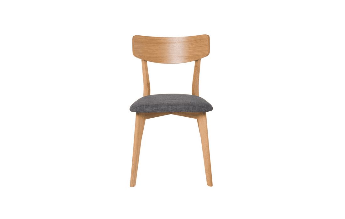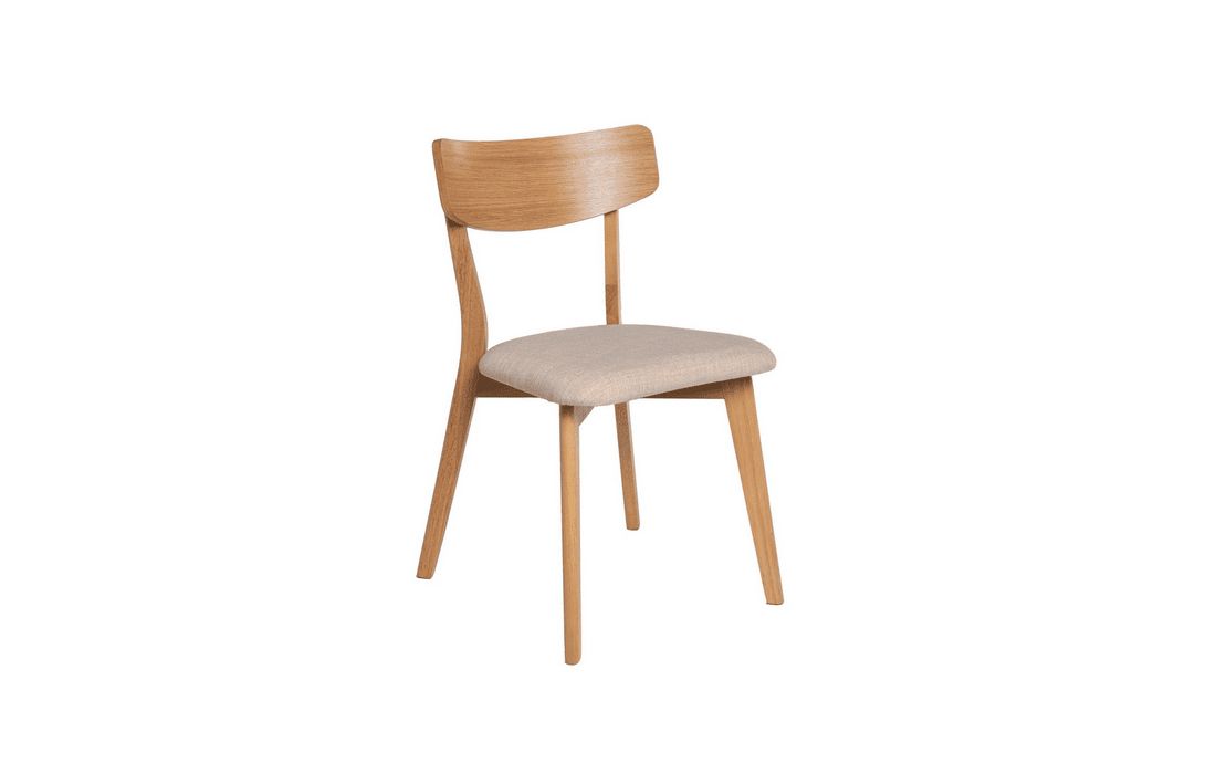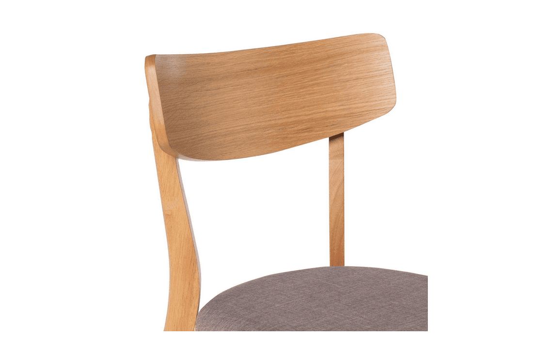 This chair is a great option for any dining room. Its structure is made of oak veneer, which gives it an elegant and modern appearance. With the option of light, dark gray and beige accents.
