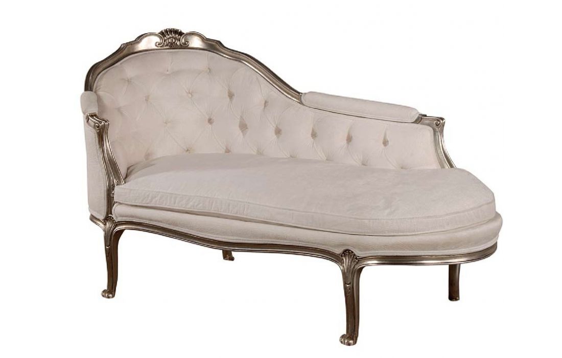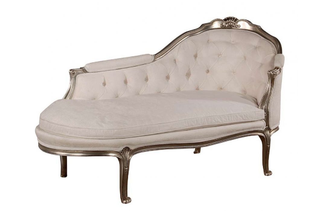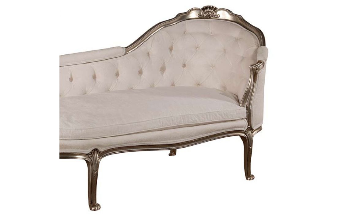 Chaiselong with Provencal design and detail in silver foil with possibility of various finishes and coatings.