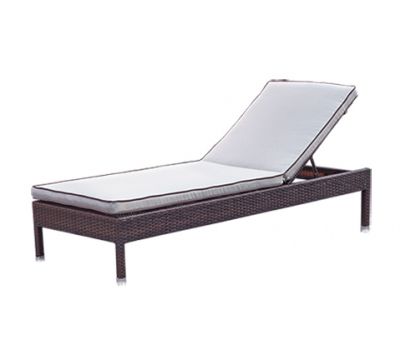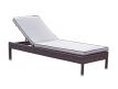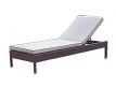 Chaiselong 5-position synthetic brown wicker with beige cushion.