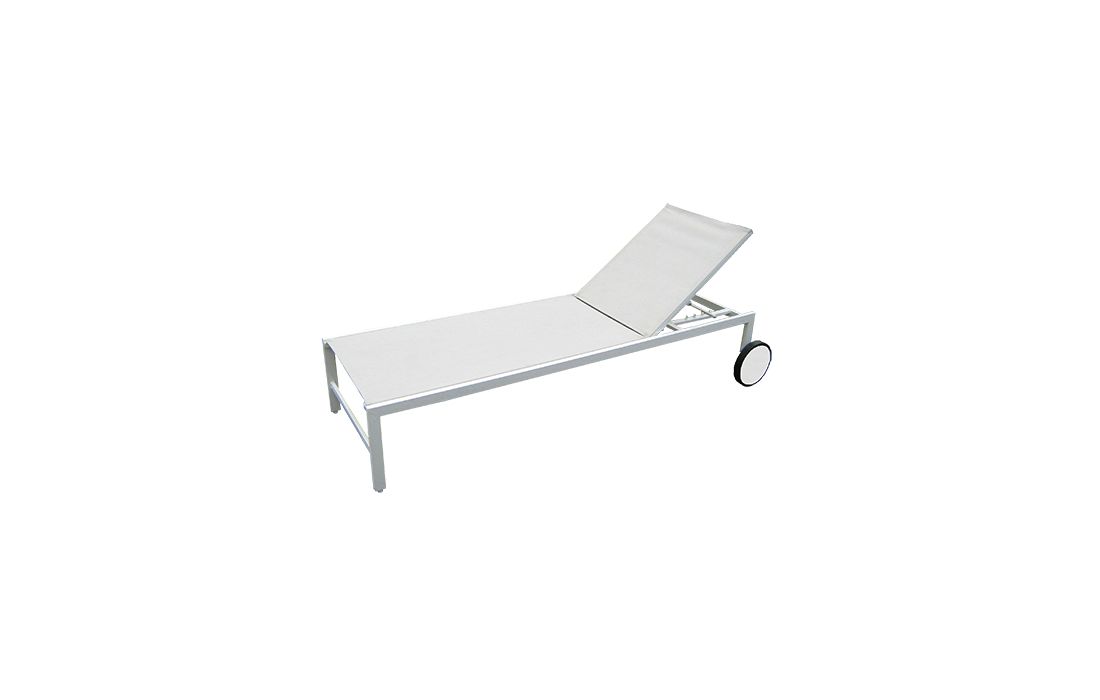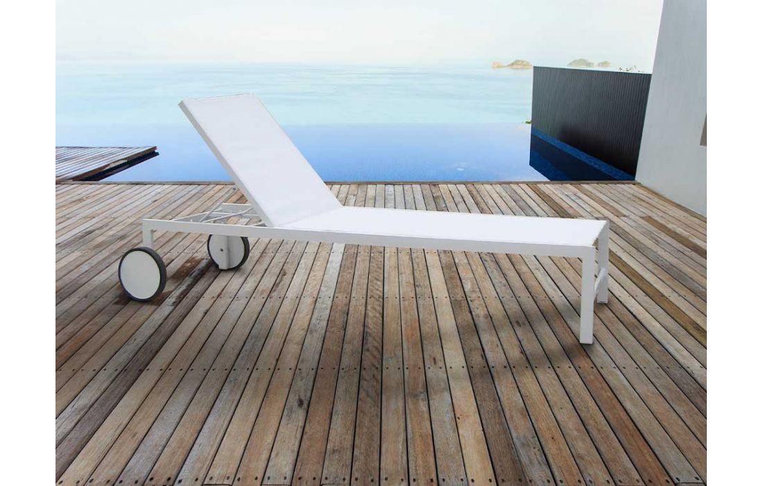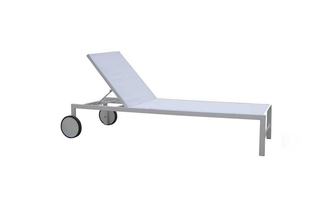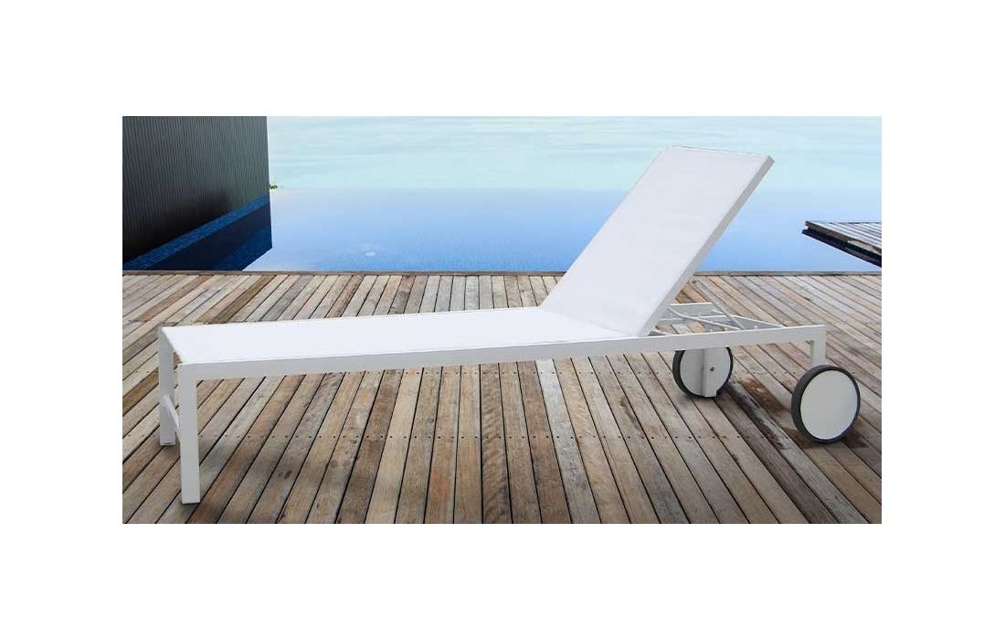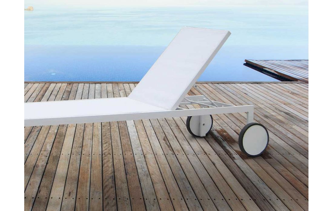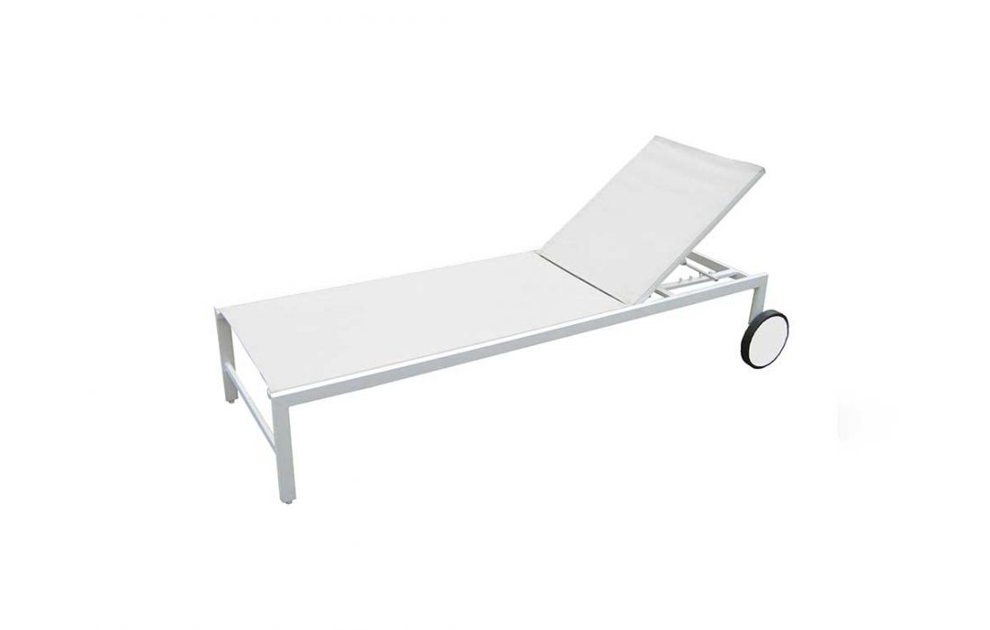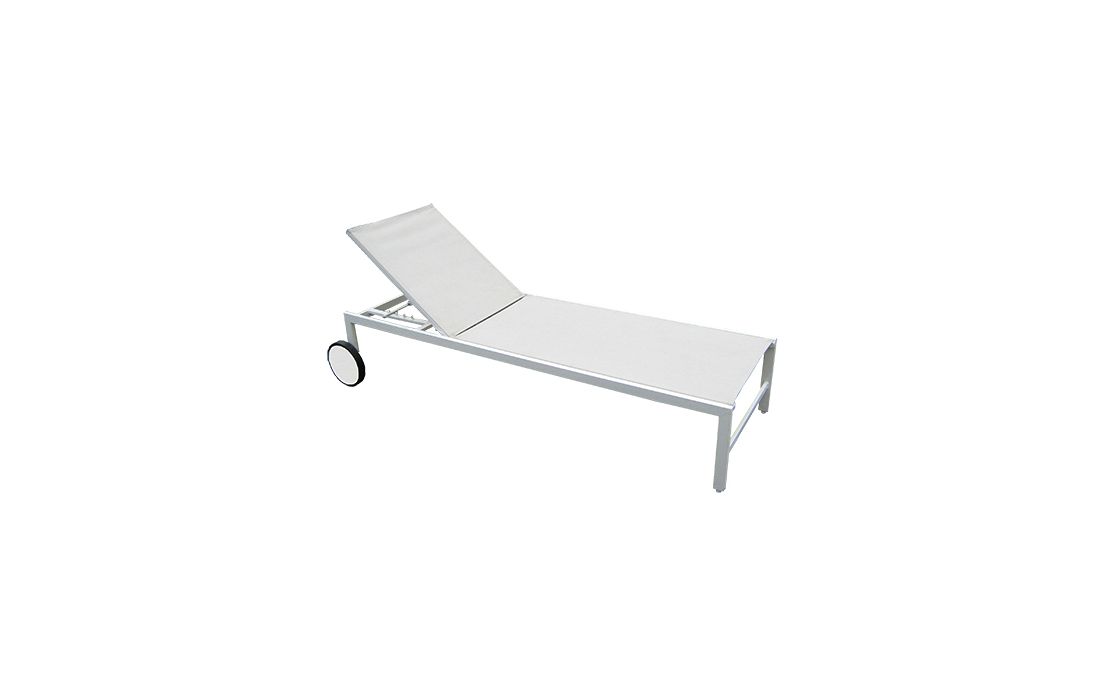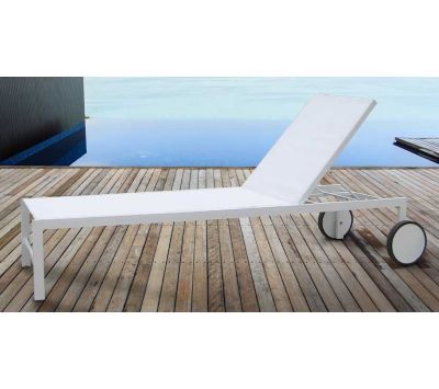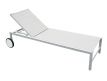 Chaiselong 5-position in white snow textilene and white aluminum frame with wheels.