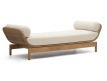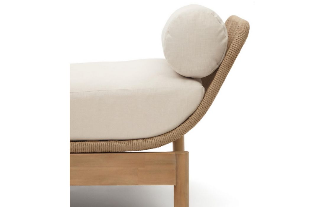 Deckchair with structure in solid acacia wood and hand-braided rope, both resistant to UV rays.