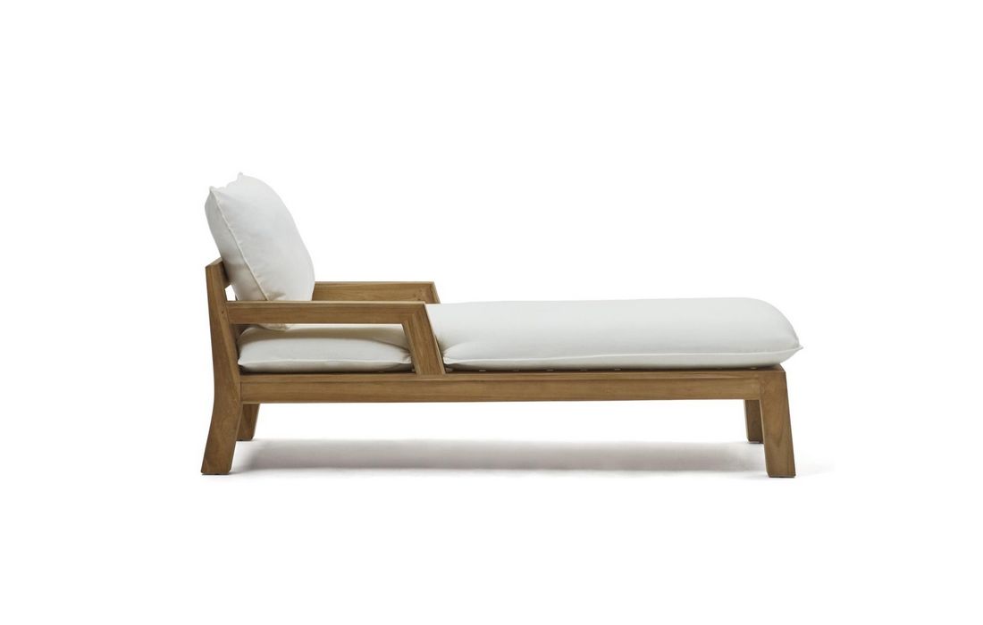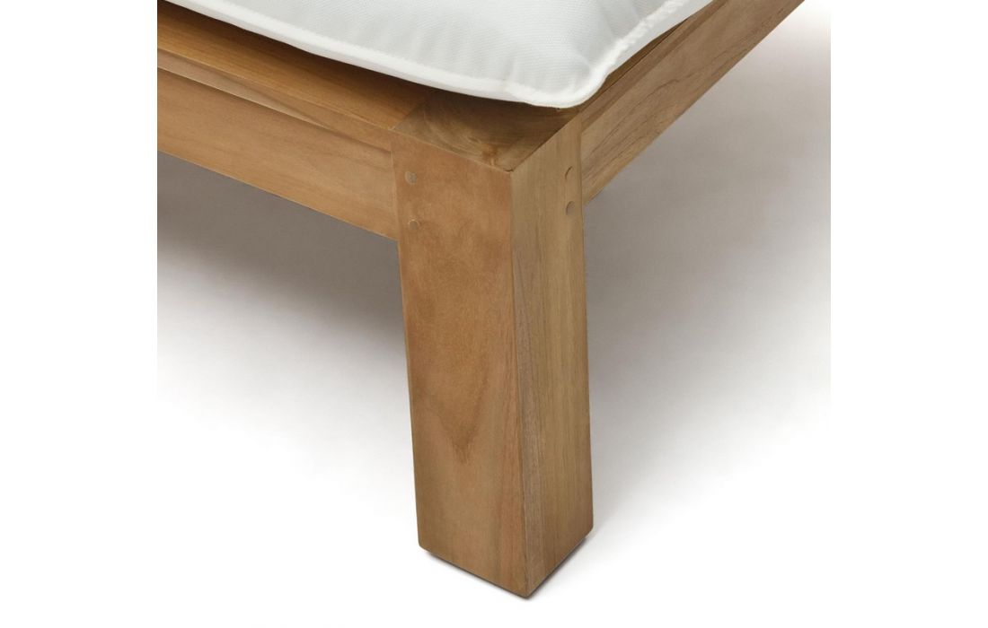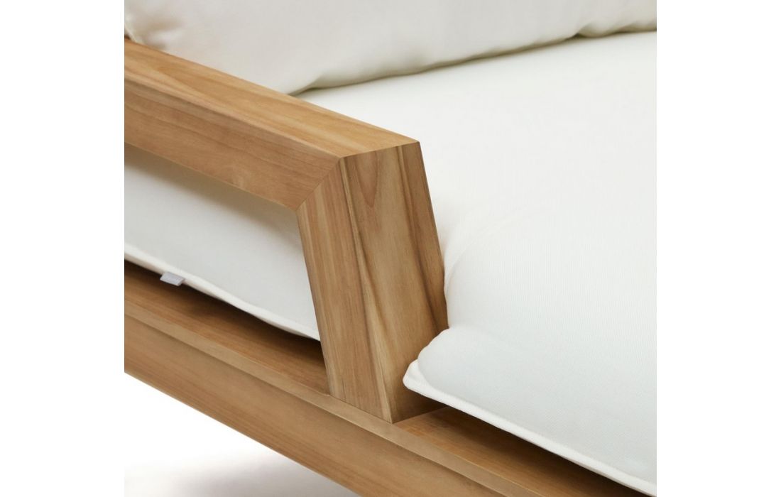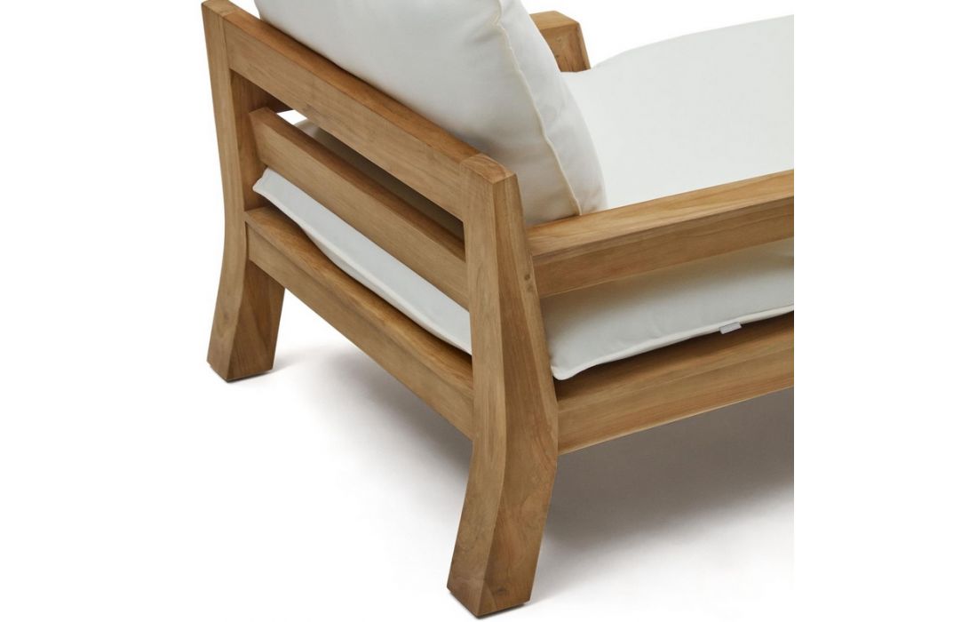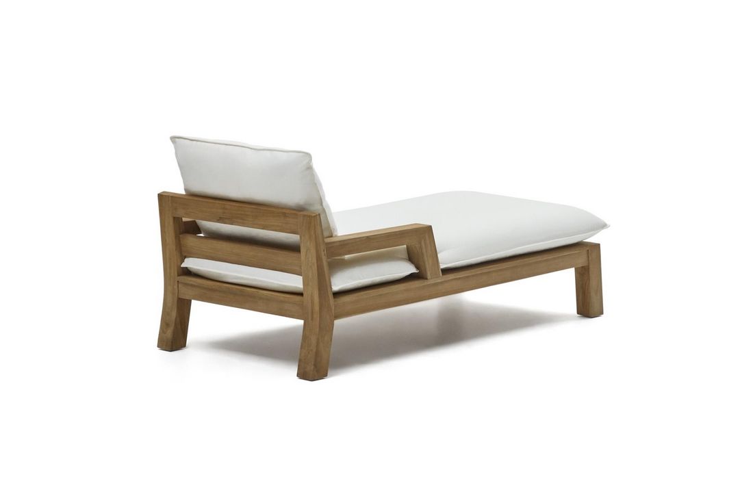 Deckchair with structure in teak wood, upholstered in white fabric..