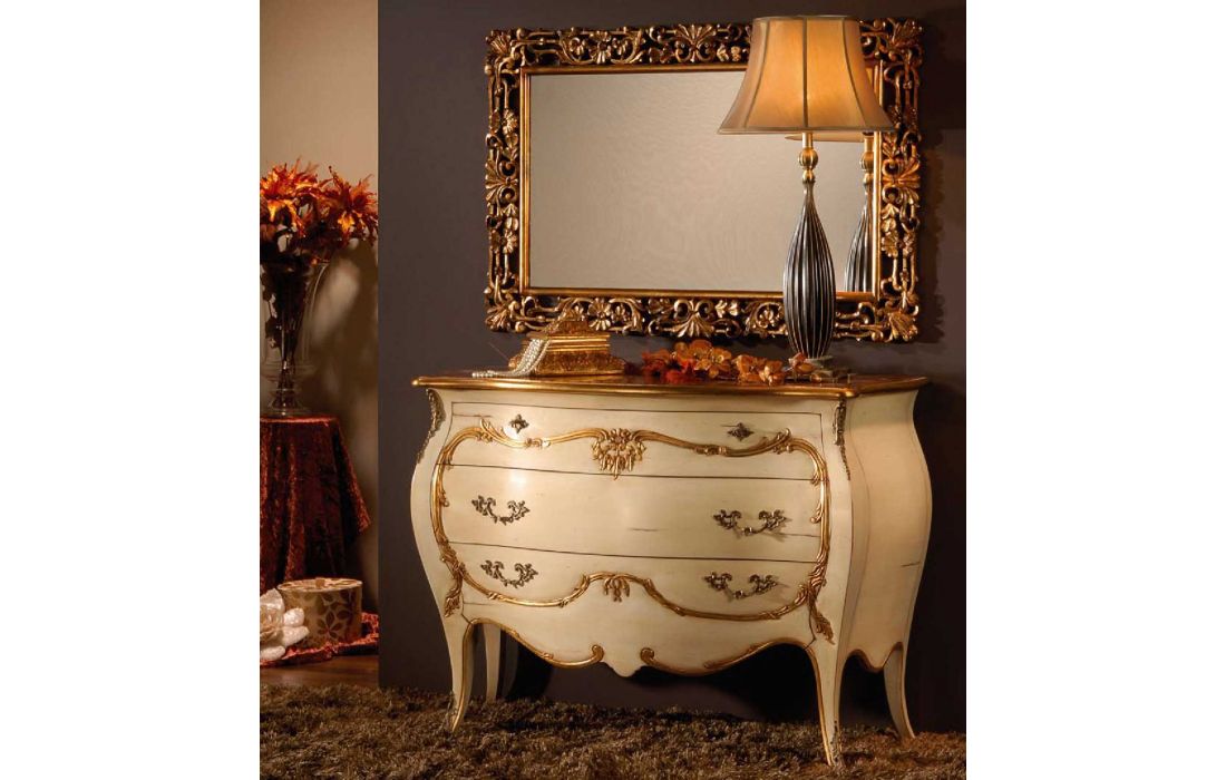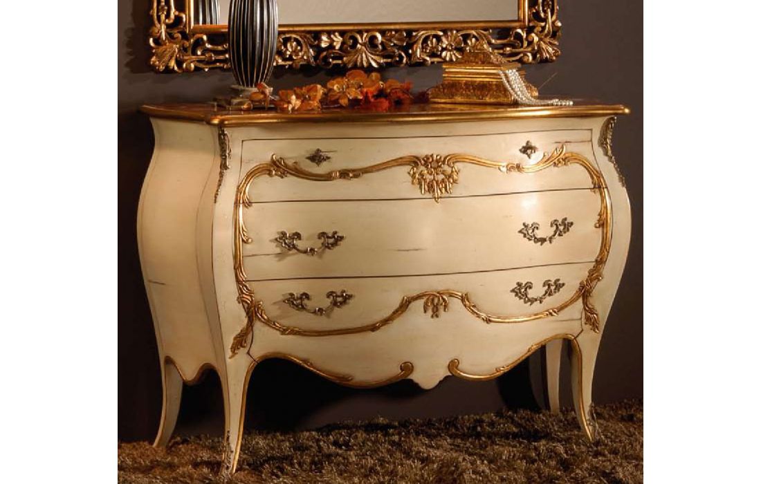 Chest of drawers with 3 drawers, Provencal design and detail in gold leaf with the possibility of several finishes