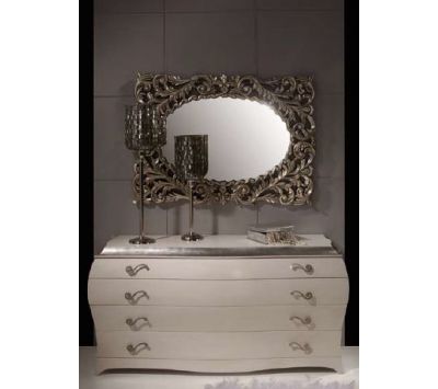 Chest of drawer with Provencal design and detail in silver foil with possibility of various finishes.