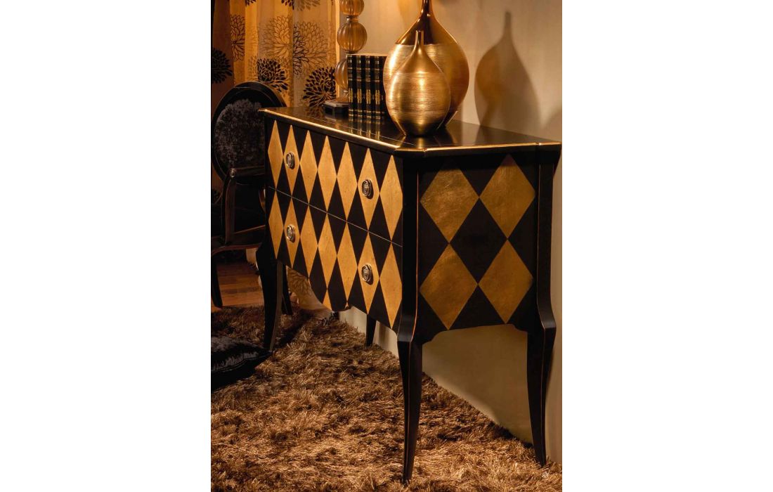 Chest of drawers with 2 drawers, Provencal design and detail in gold leaf with possibility of several finishes.