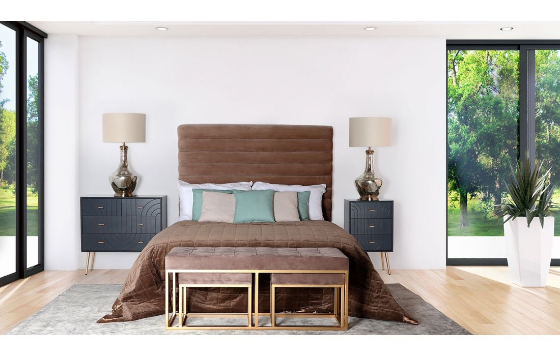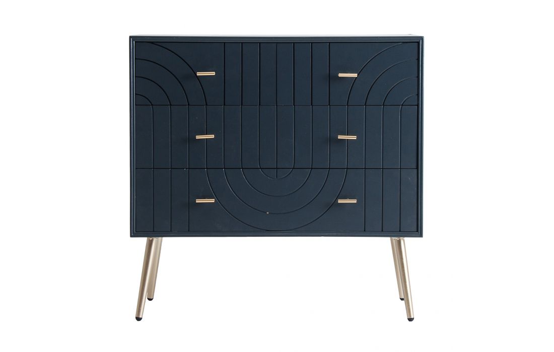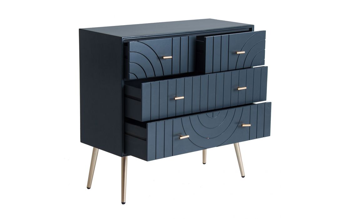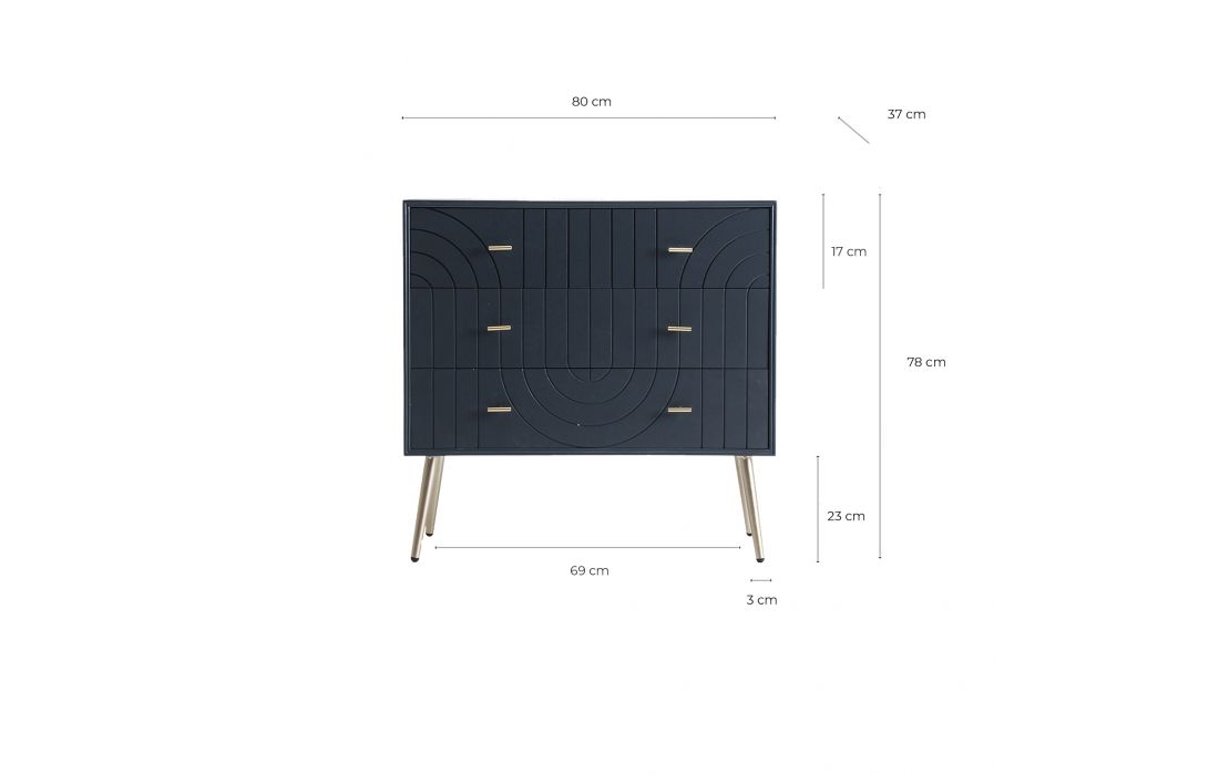 Chest of drawers made of dark gray pine wood combined with legs and handles with golden finish