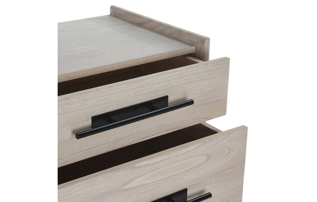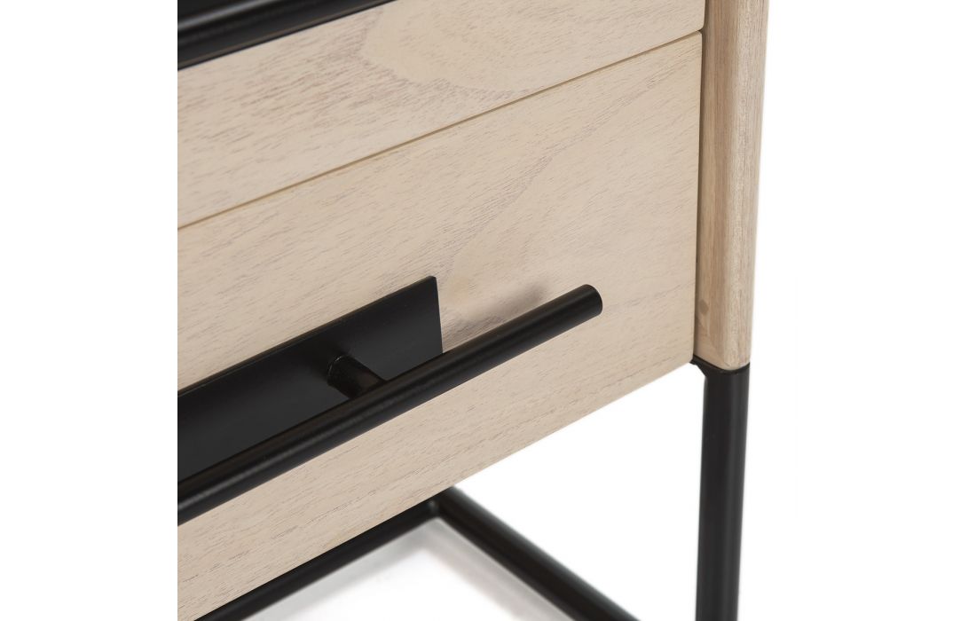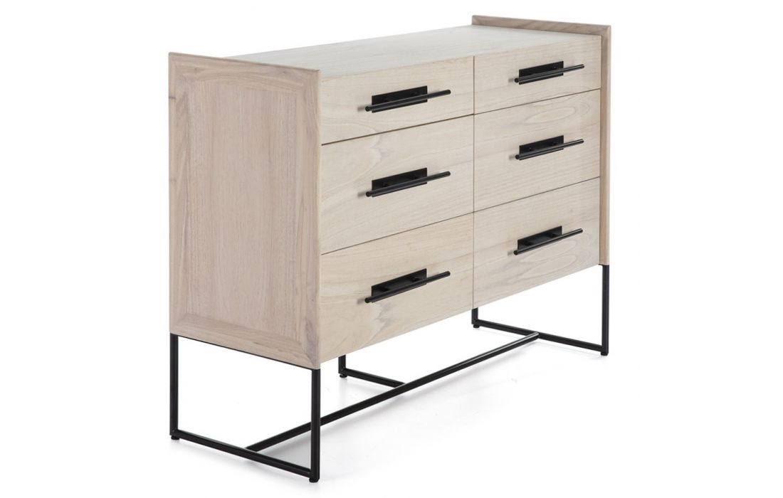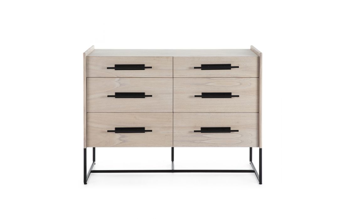 Chest of drawers with 6 drawers in natural wood and base and handles in black metal.Dimensions in cm