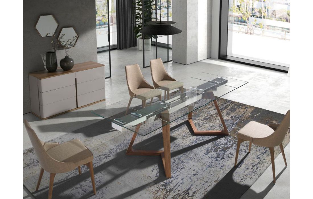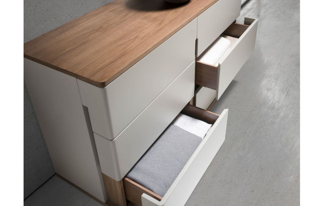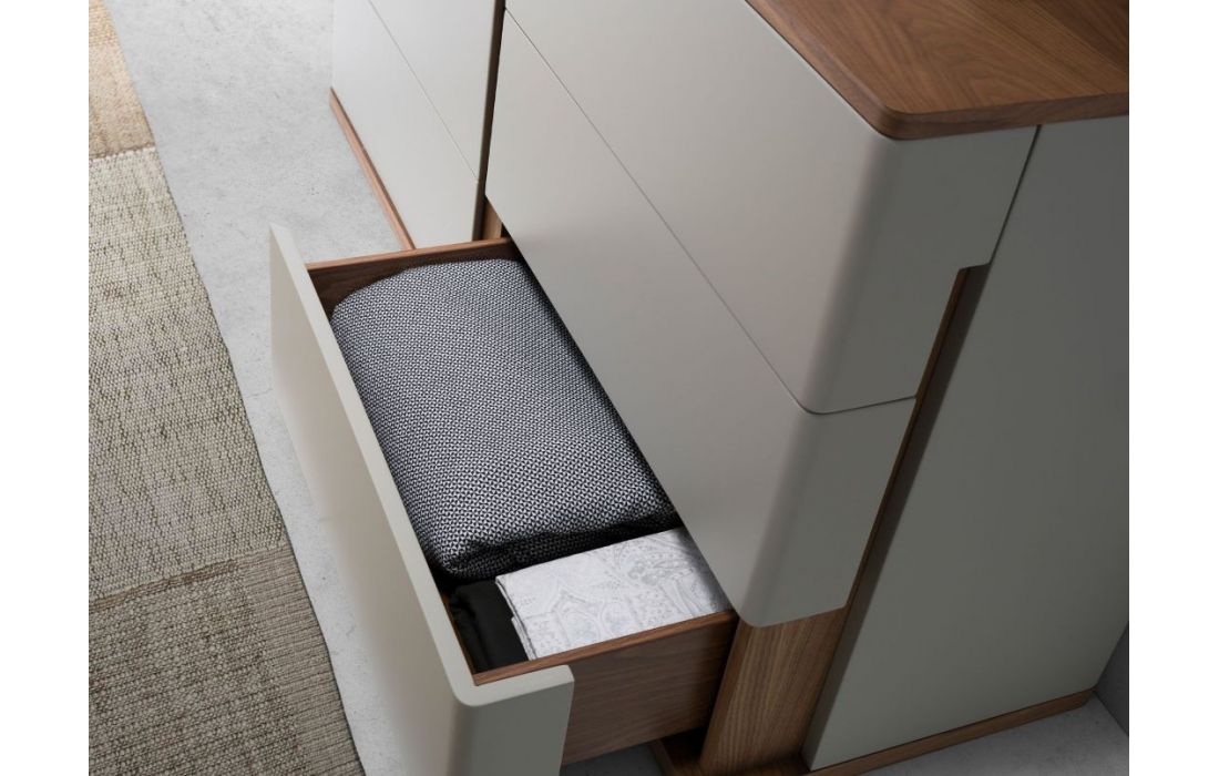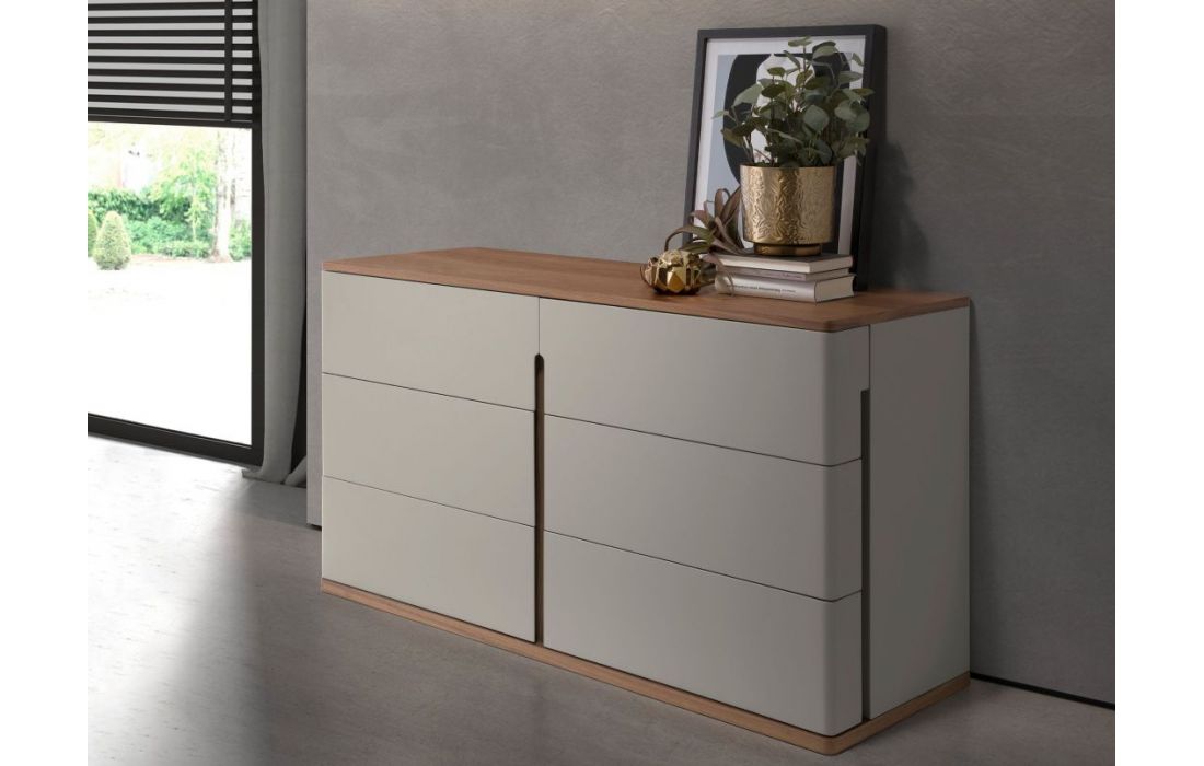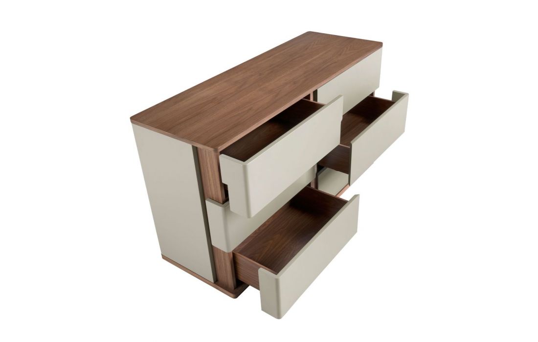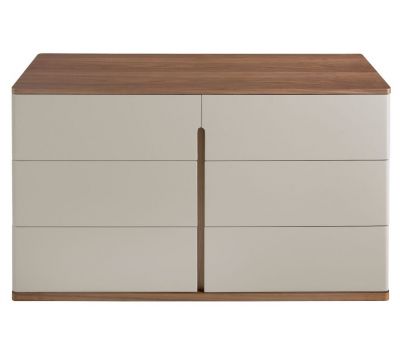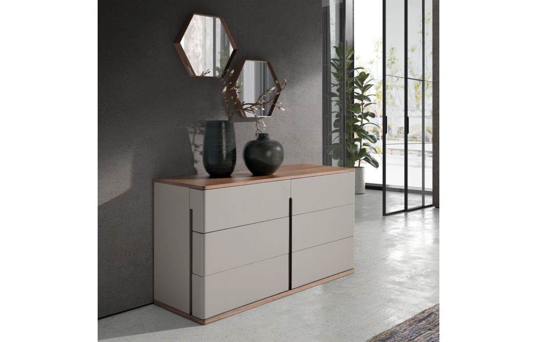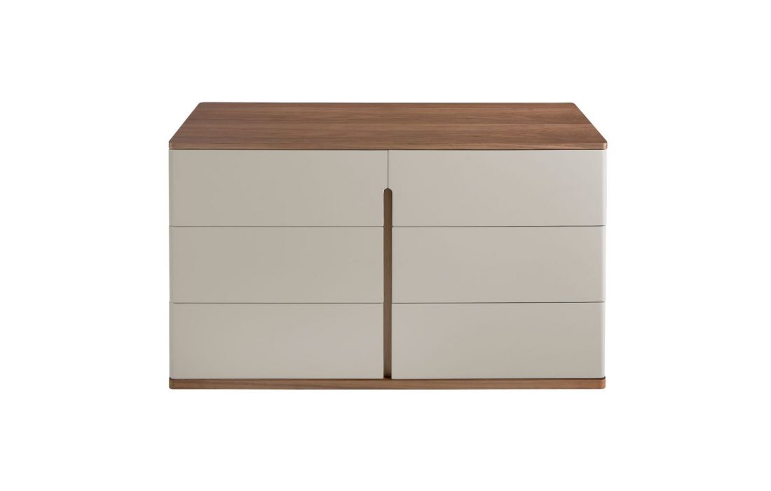 Modern design chest of drawers with gray MDF structure and original walnut-colored MDF base, with natural walnut MDF top and 6 drawersRecipient :