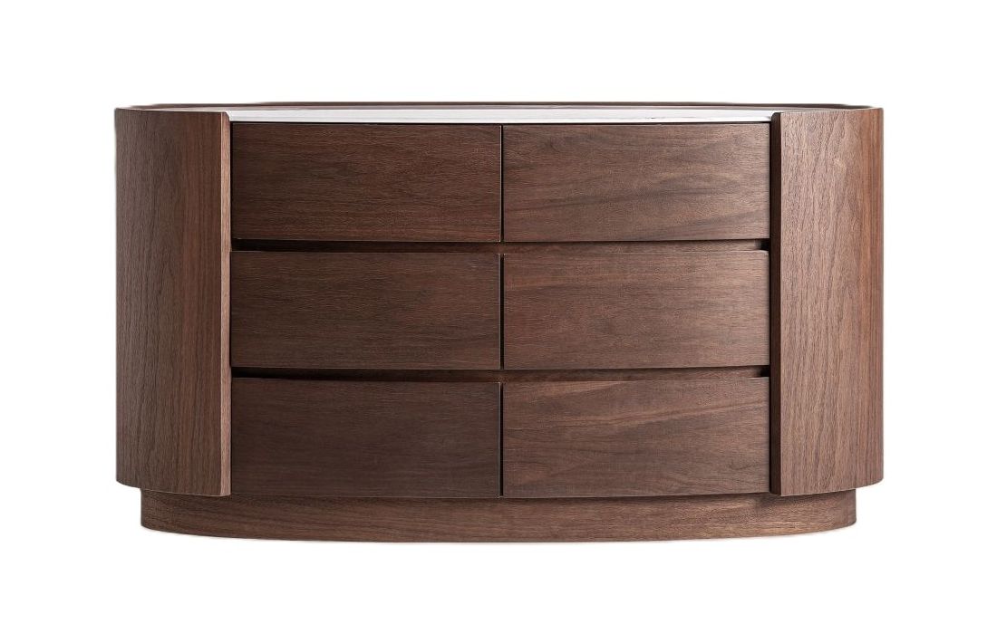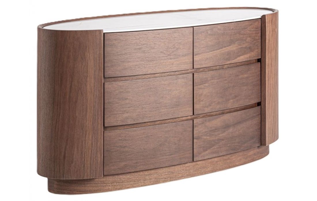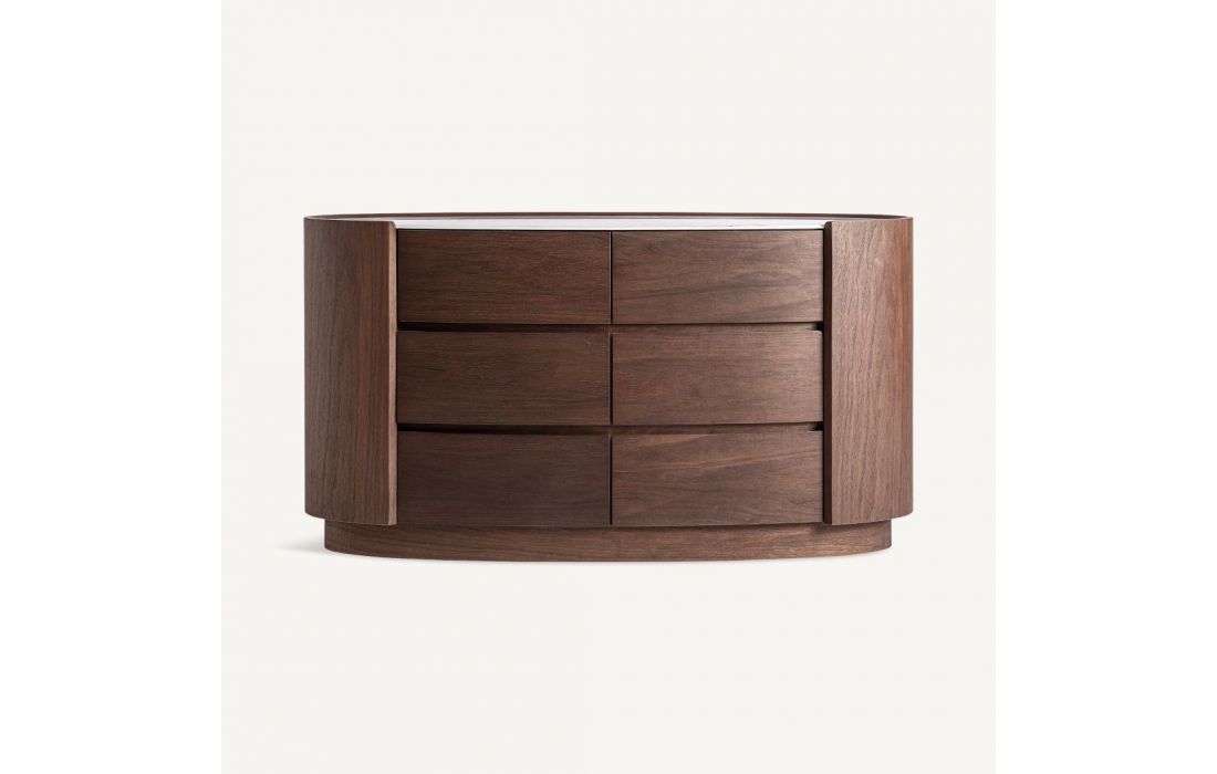 Chest of drawers made of brown plywood and oak veneer, it is complemented by a white sintered stone topRecipient :