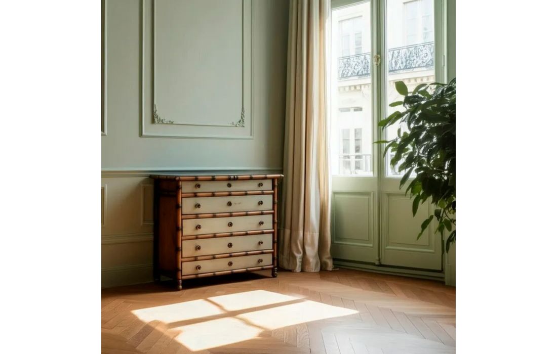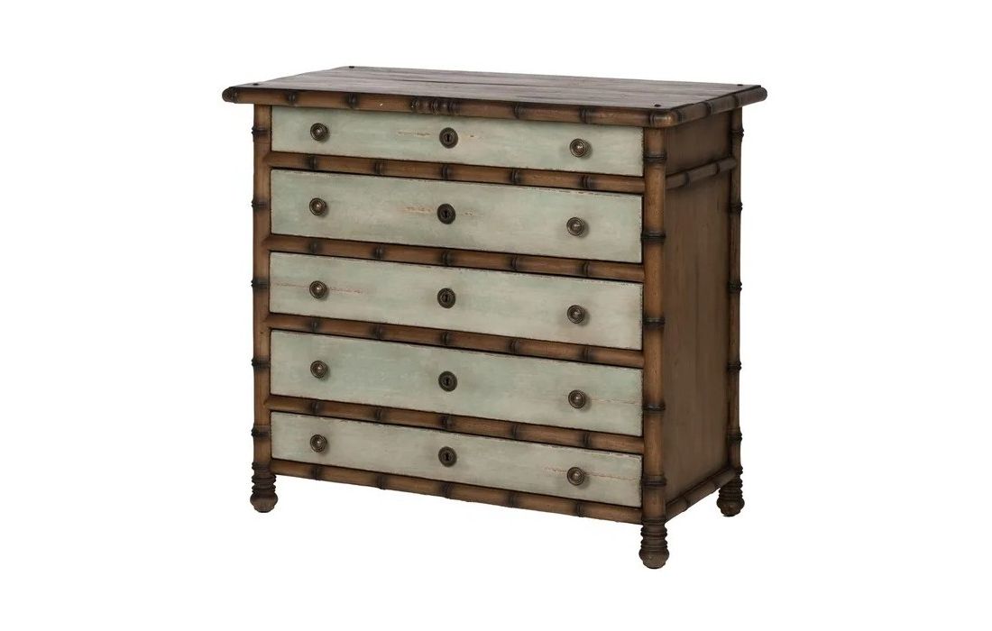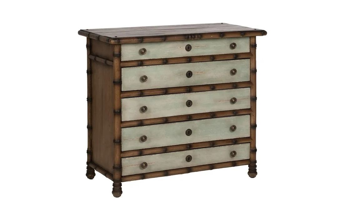 Chest of drawers made of mindi wood with a rustic style and aged finish, large storage space with 5 drawersRecipient :