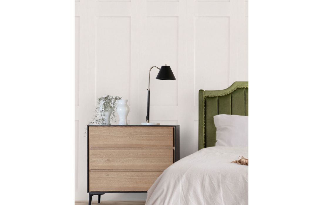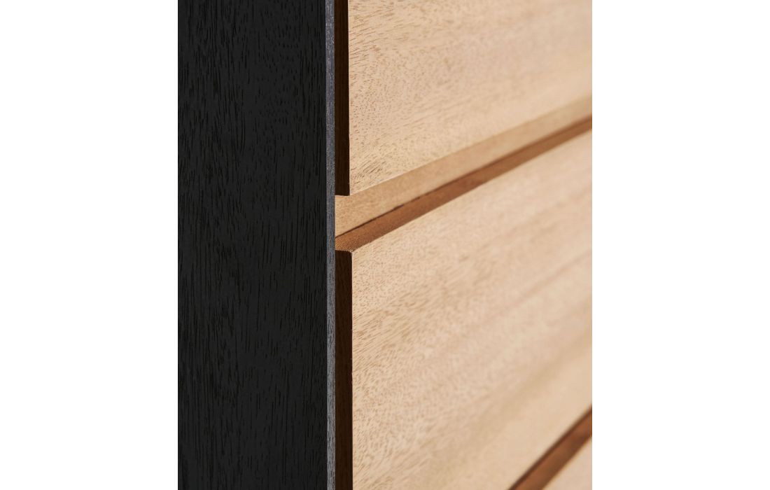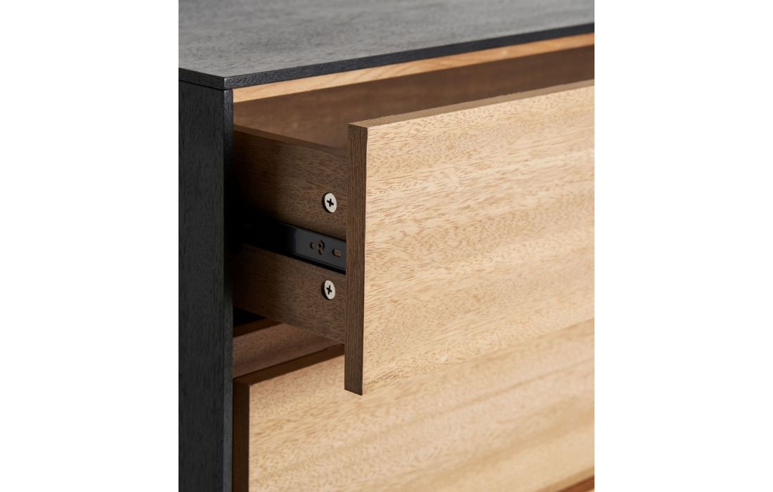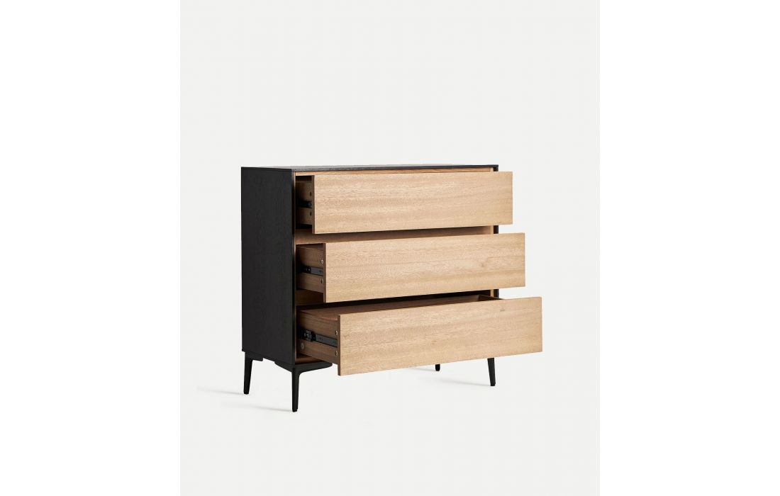 With a simple design and contemporary touch, the BRUSSA CHEST OF DRAWERS arrives to fill spaces with warmth and personality.It is made of MDF combined with thin iron legs.