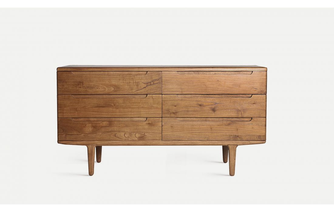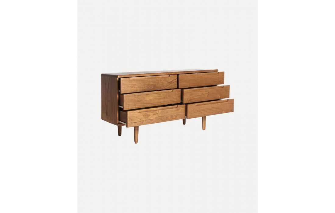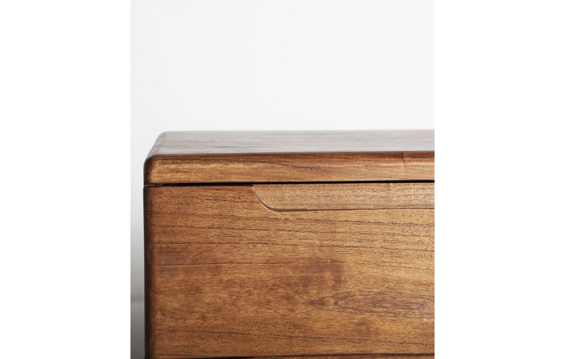 The SLOUGH chest of drawers, crafted from natural mindi wood, is perfect for bedrooms with a rustic style.Its spacious drawers provide ample storage for clothing or personal accessories.