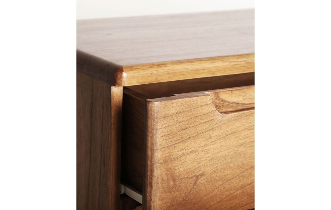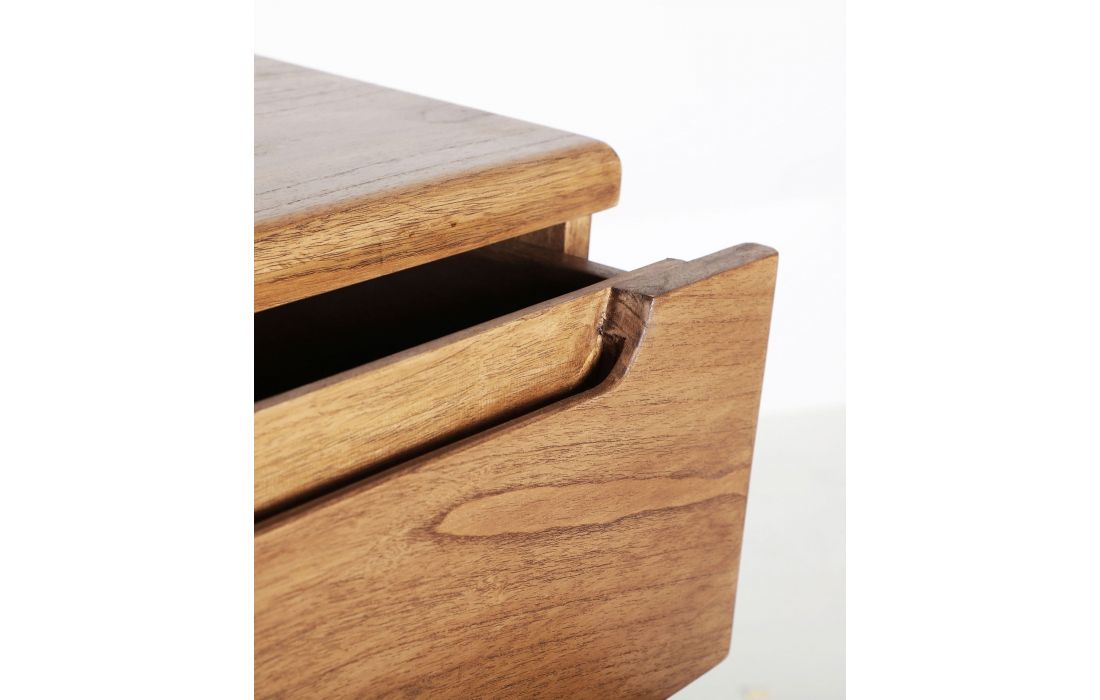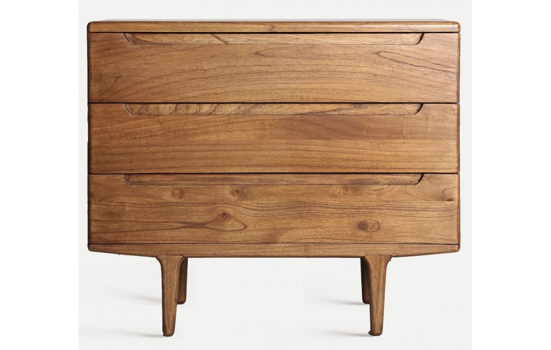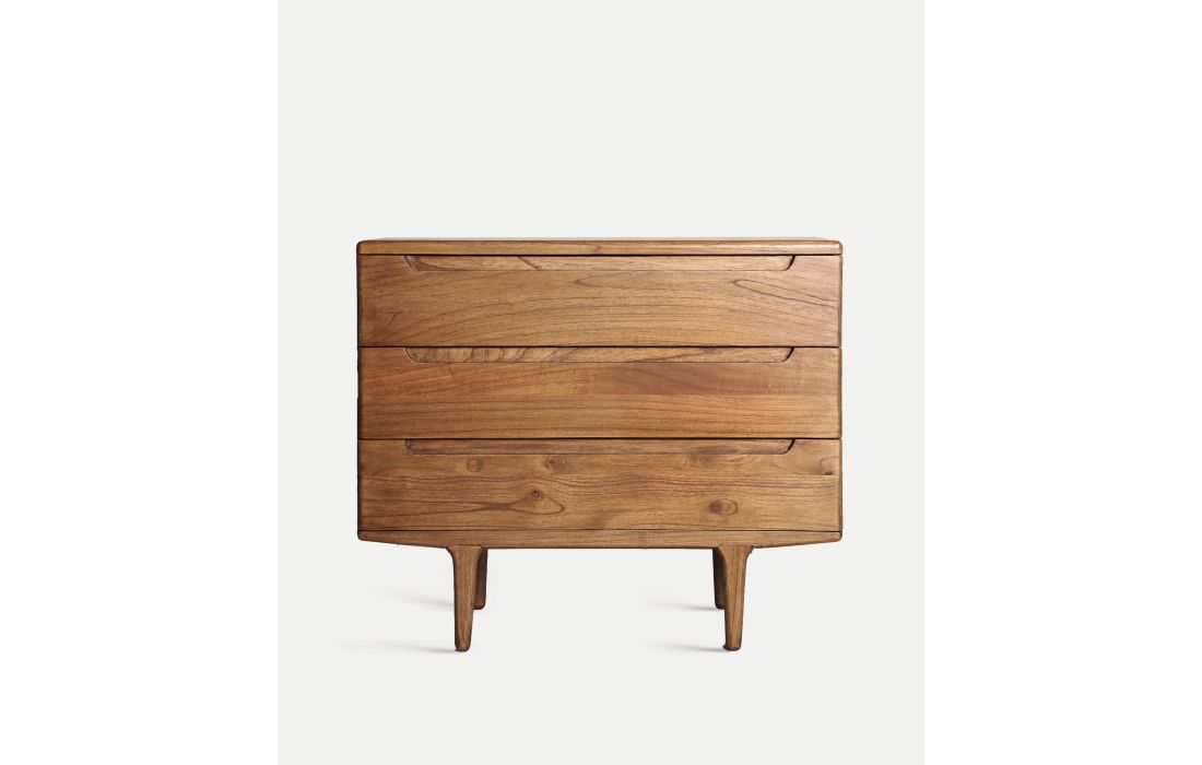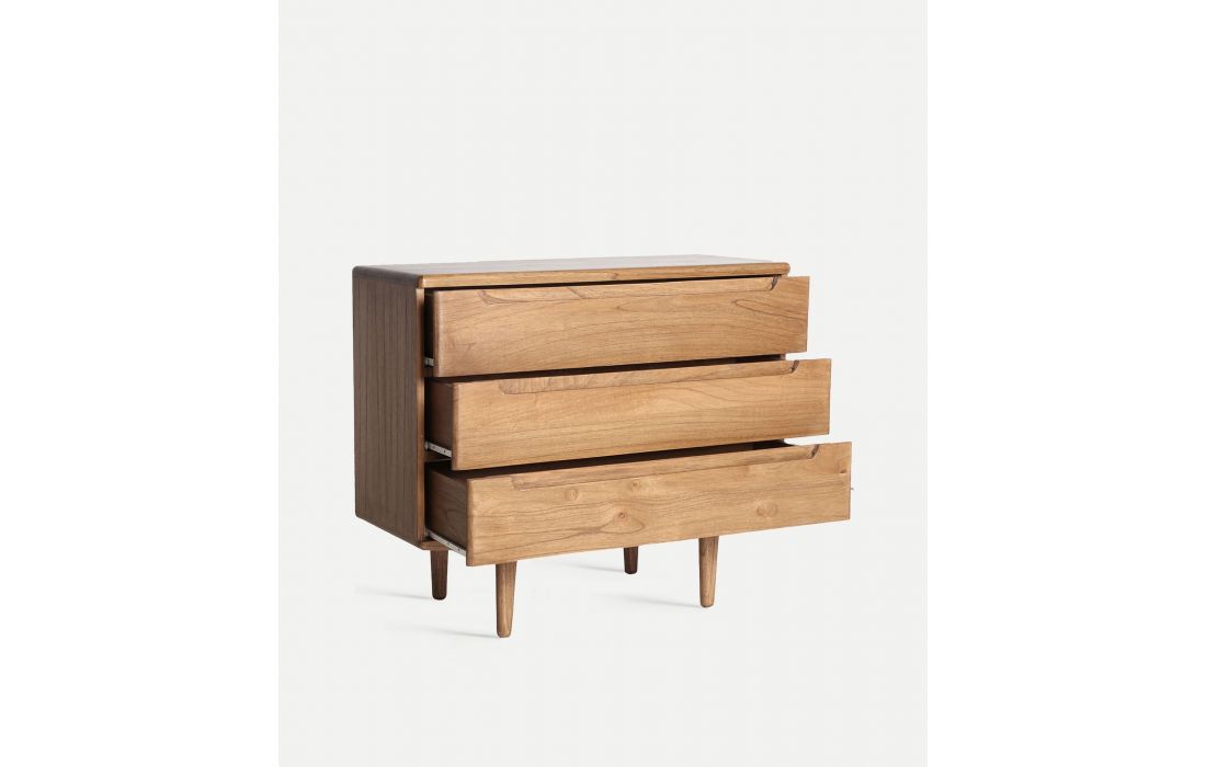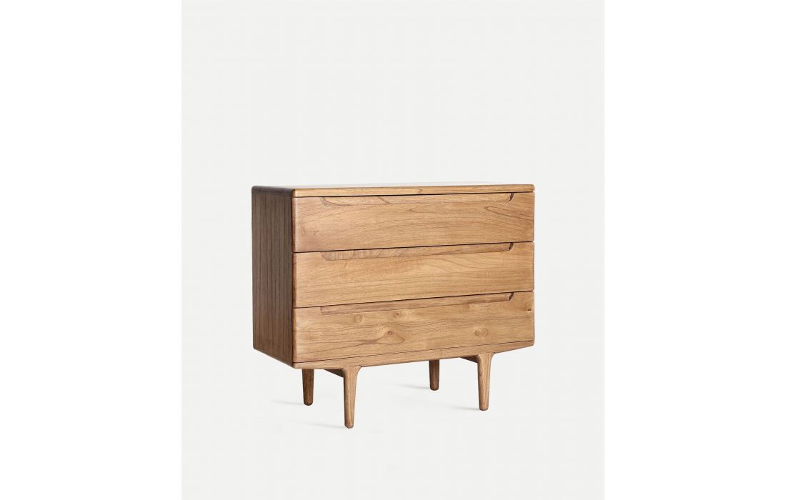 The SLOUGH chest of drawers in natural mindi wood features a Nordic design combining practicality and elegance.With three large drawers and integrated handles, it offers ideal storage space for clothes, accessories, or other items.