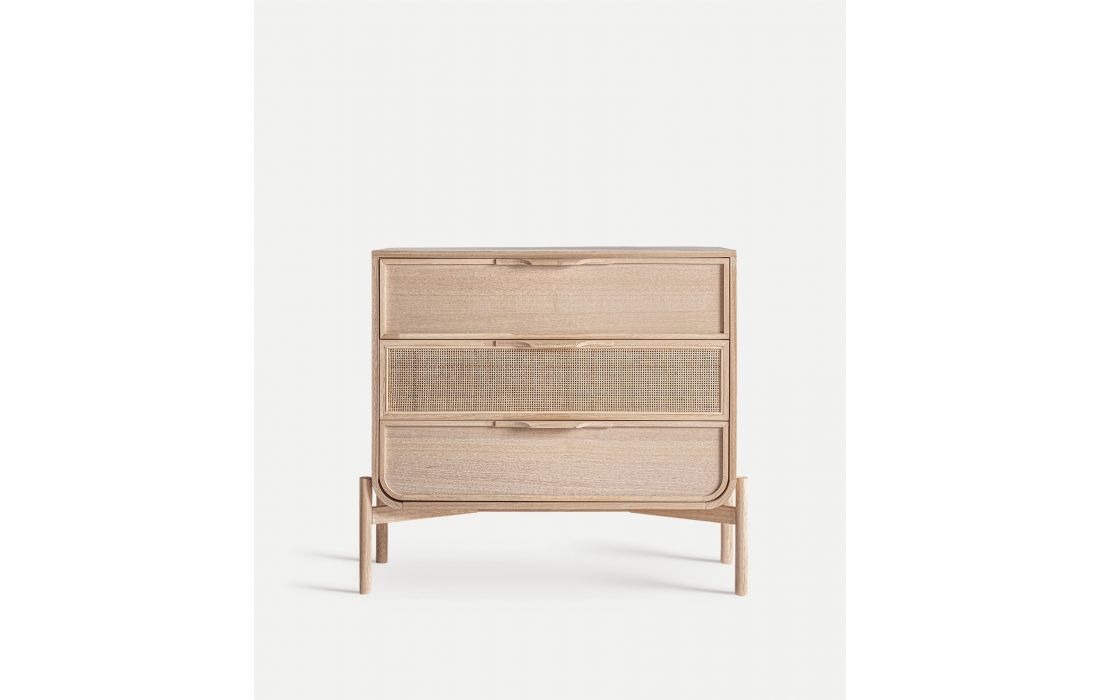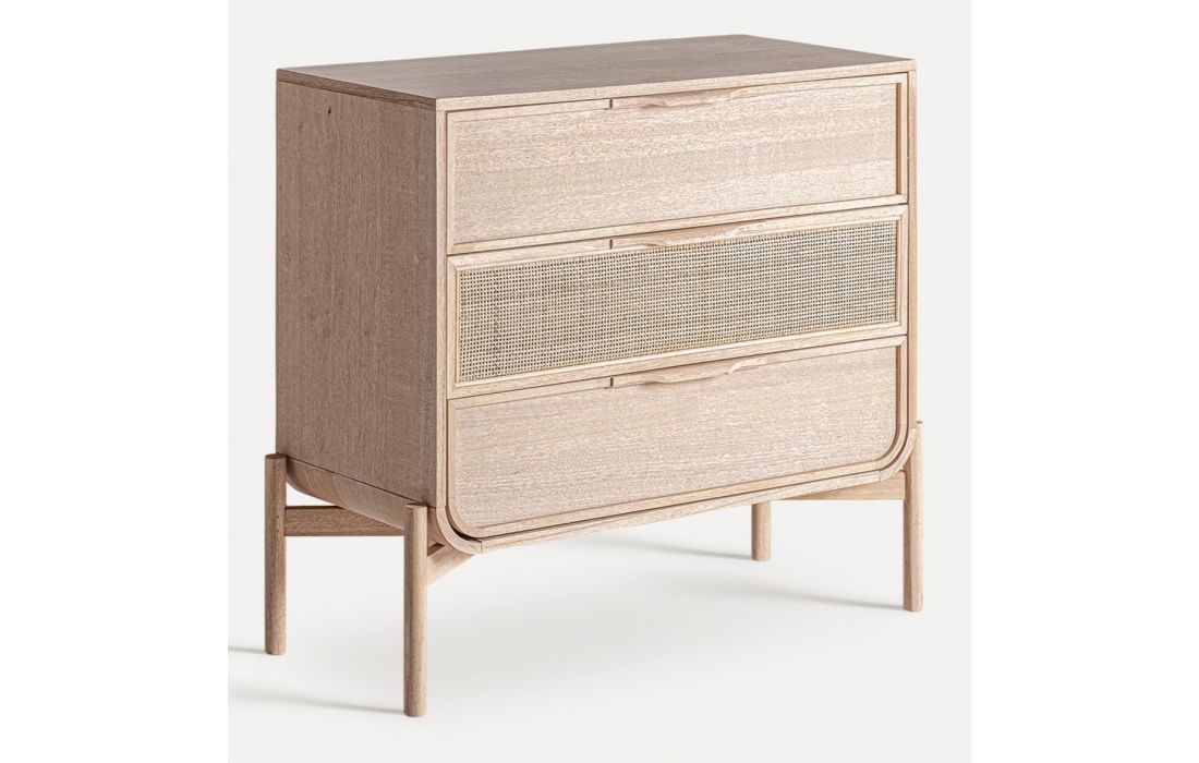 The WEURTZ chest of drawers in ash wood with straw detailing is perfect for modern bedrooms.Its design includes spacious drawers, ideal for storing clothes and accessories, combining functionality and natural style.
