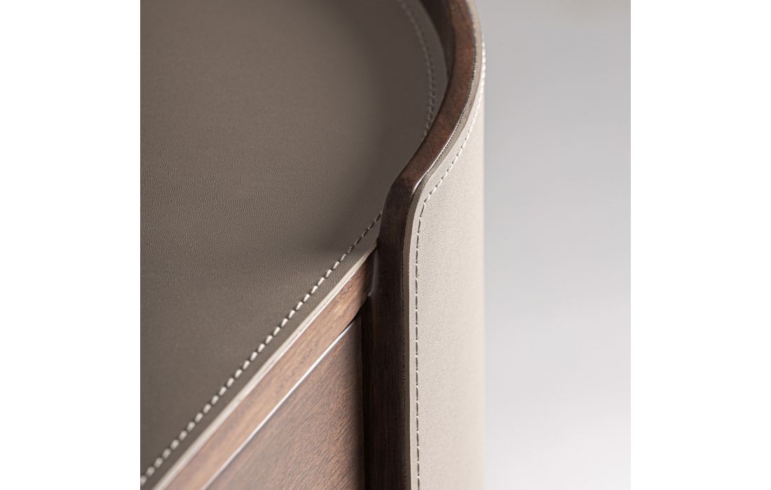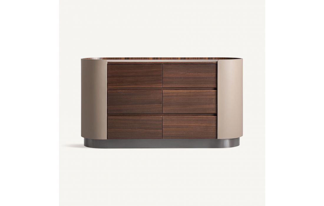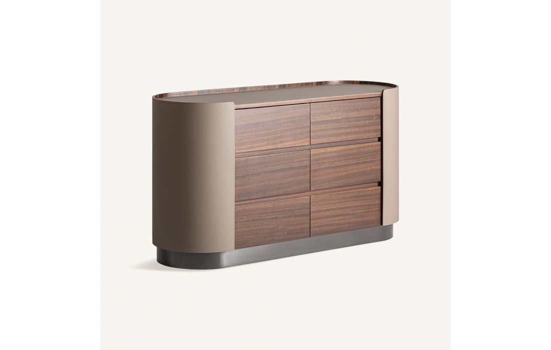 This chest of drawers is a piece of great aesthetic presence. The plywood is complemented by brushed eucalyptus veneer and leather details, creating a balance between warmth and sophistication.Recipient :