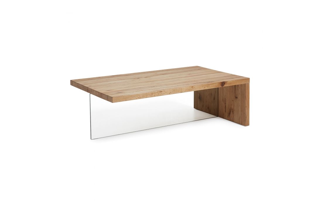 Coffee table in natural oak with glass feet