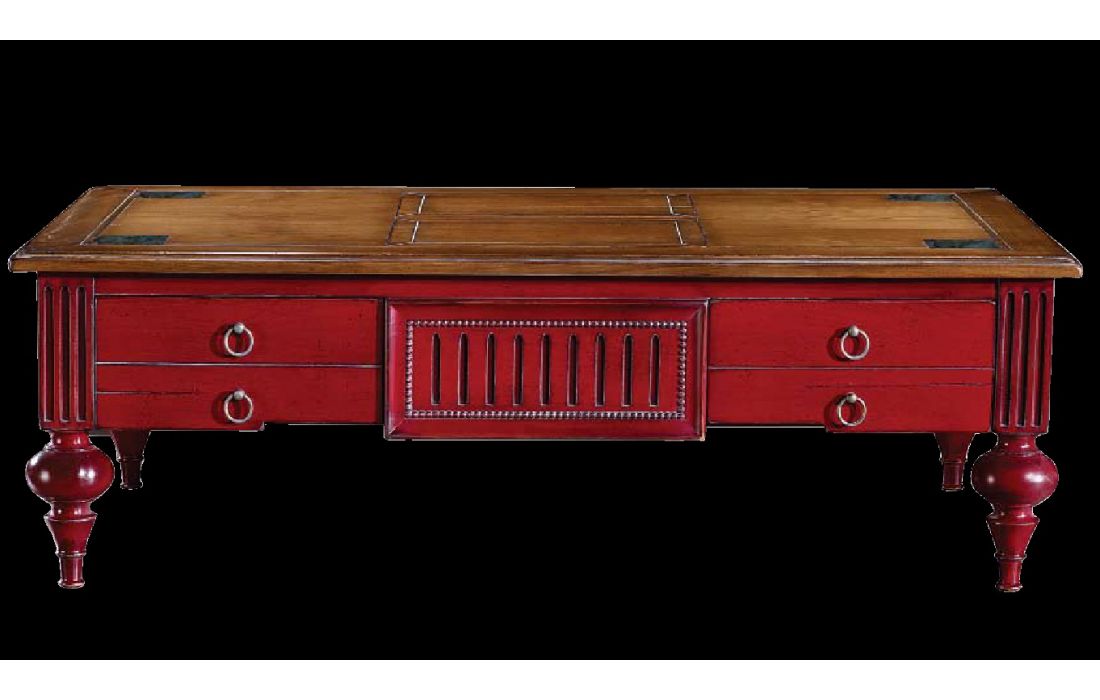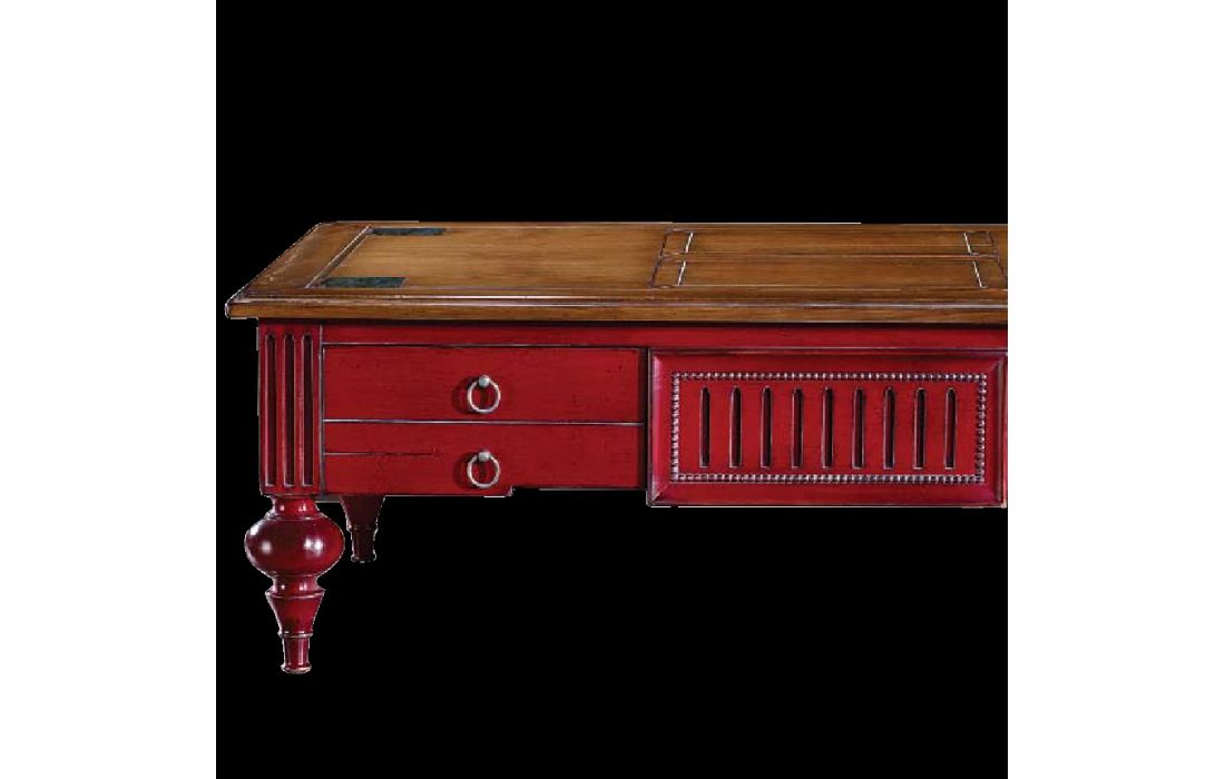 Coffee table rectangular with 2 drawers, upper opening with marble details, Provencal design with possibility of various finishes.