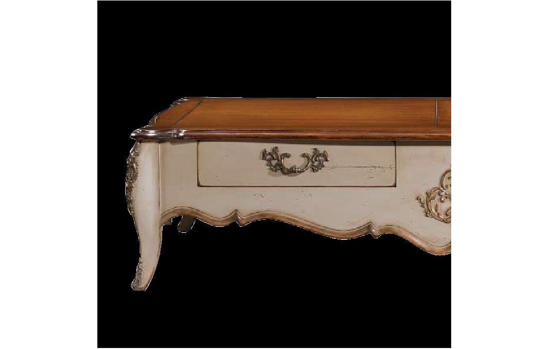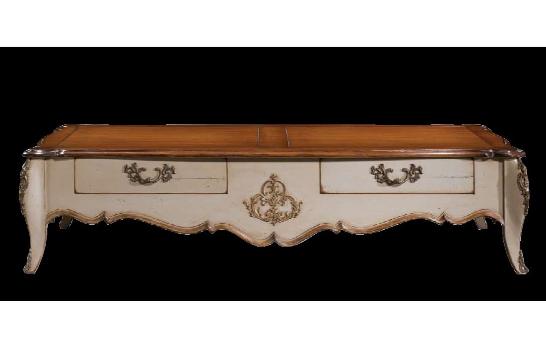 Coffee table rectangular with 2 carved drawers, Provencal design with possibility of various finishes..