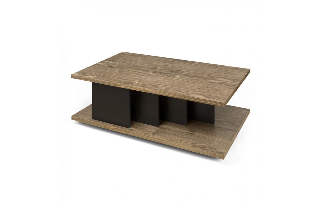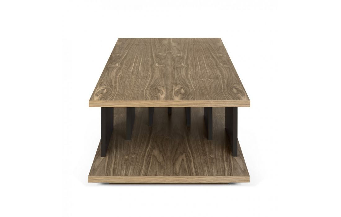 Coffee table with an interesting sequence of dividers, which combines a practical function of storage to an original design.