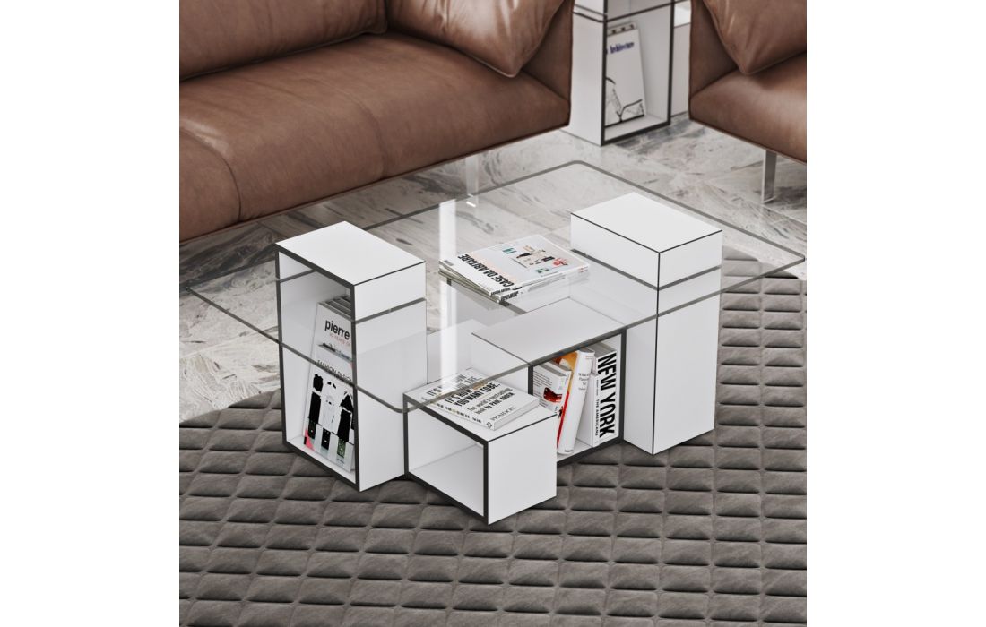 | Coffee table in white Pure + valchromat black + glass | ||||||||