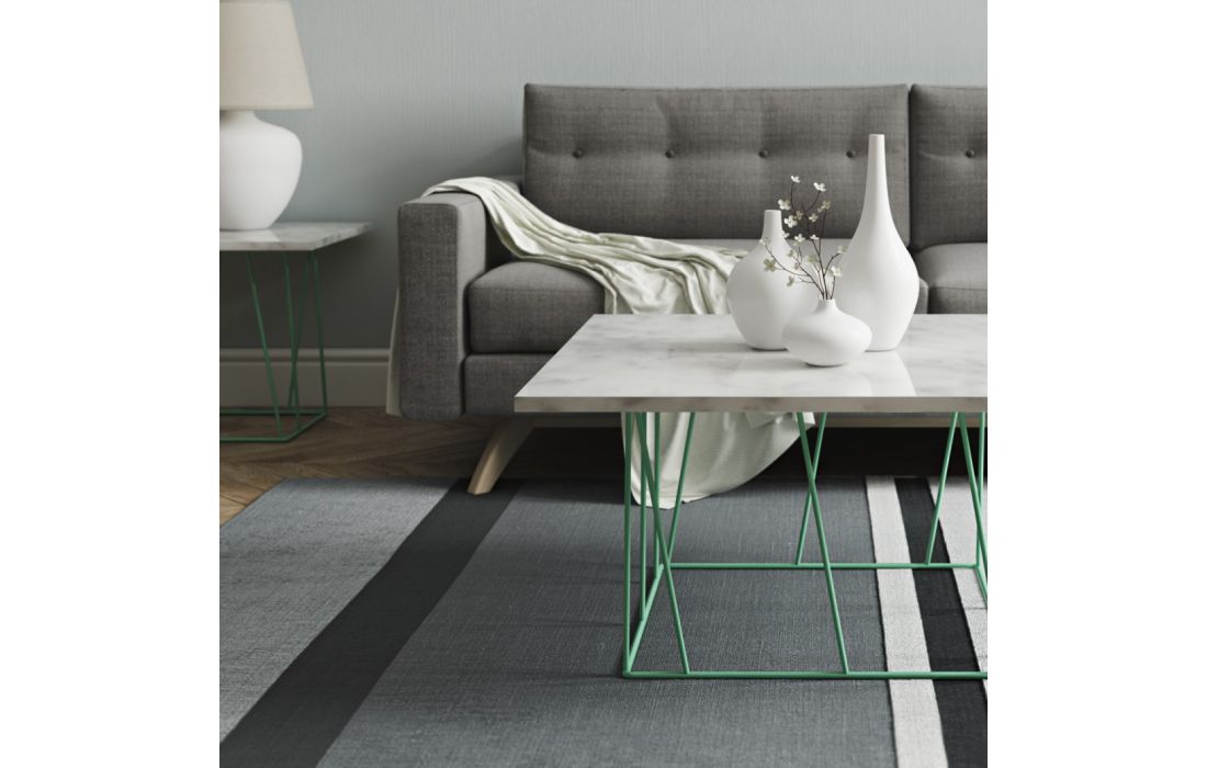 Modular coffee table with several top options in conjunction with original metallic feet in water green or black.
