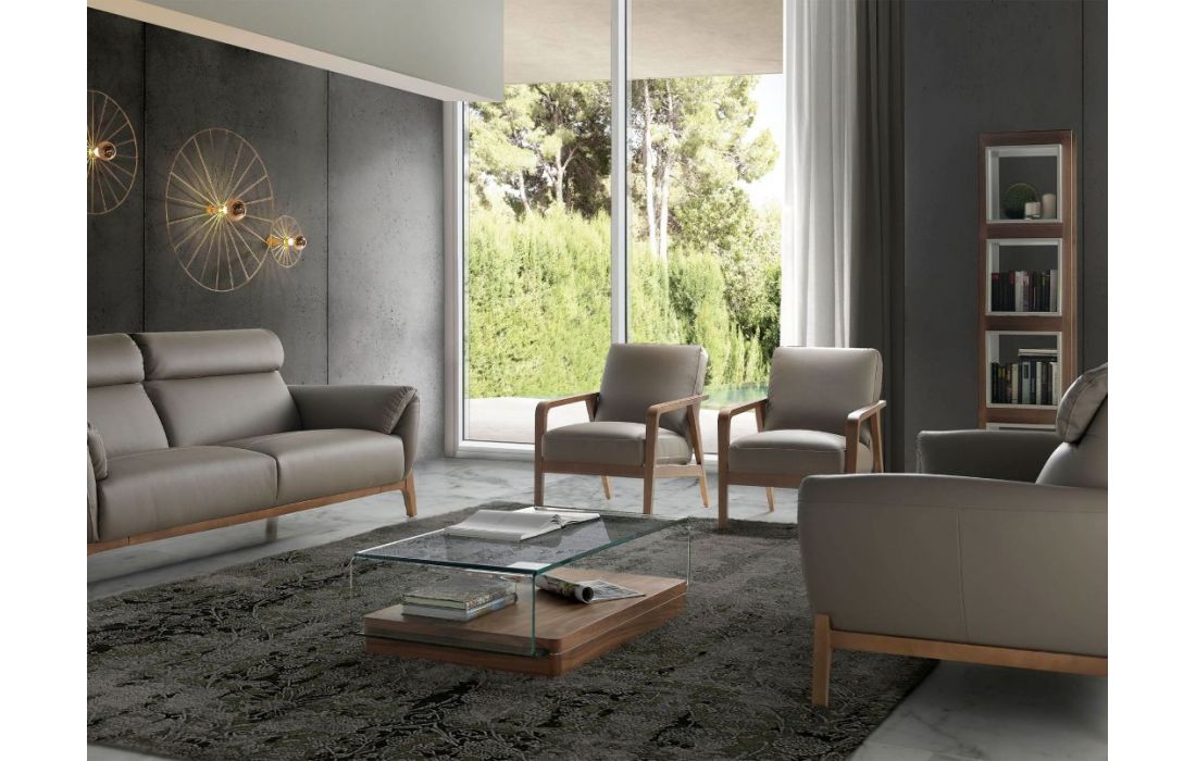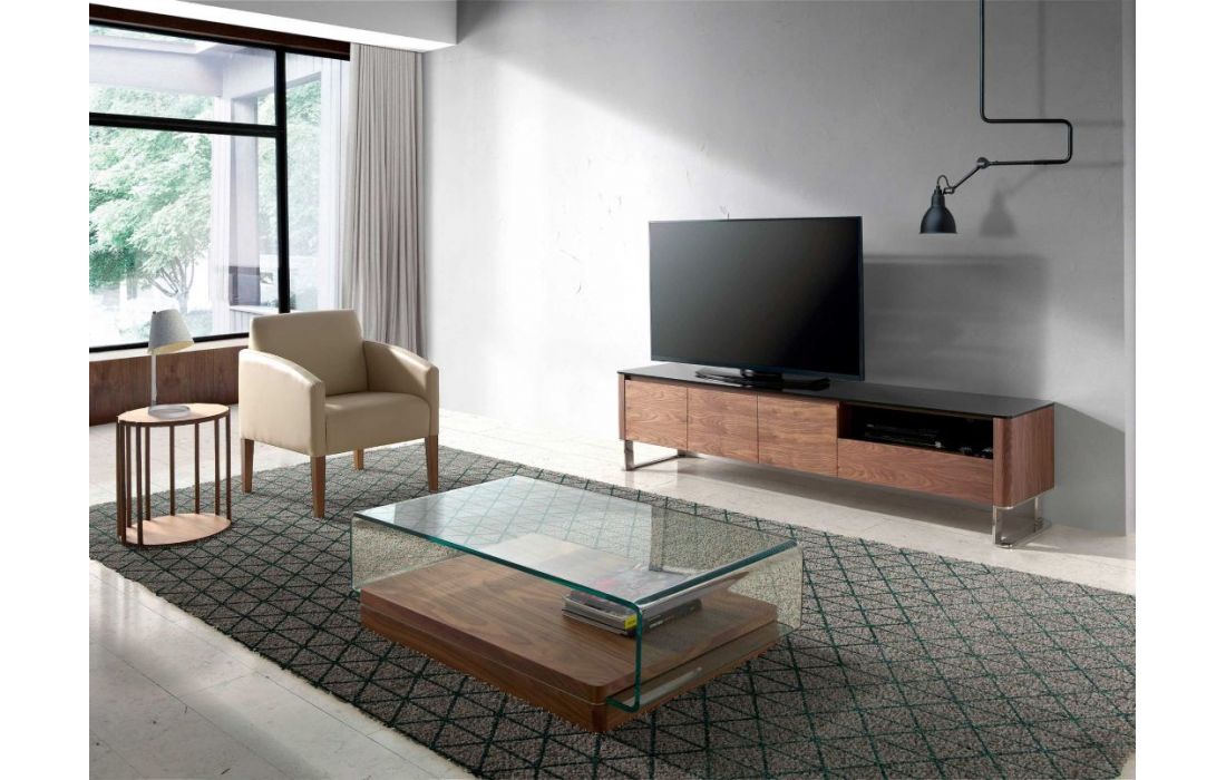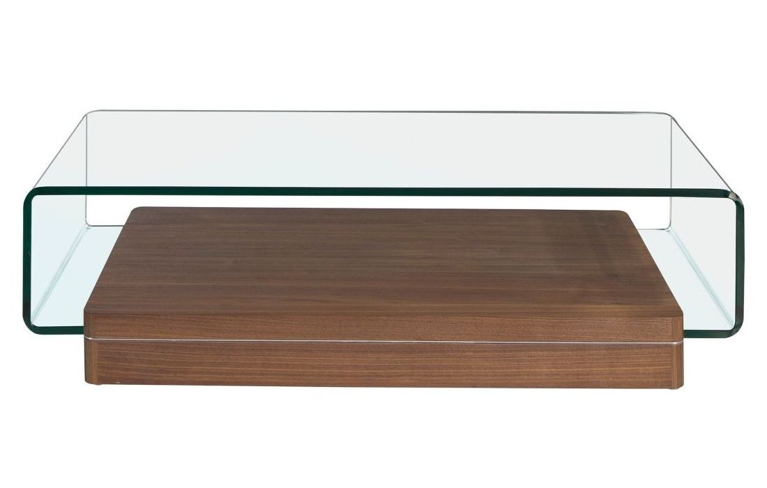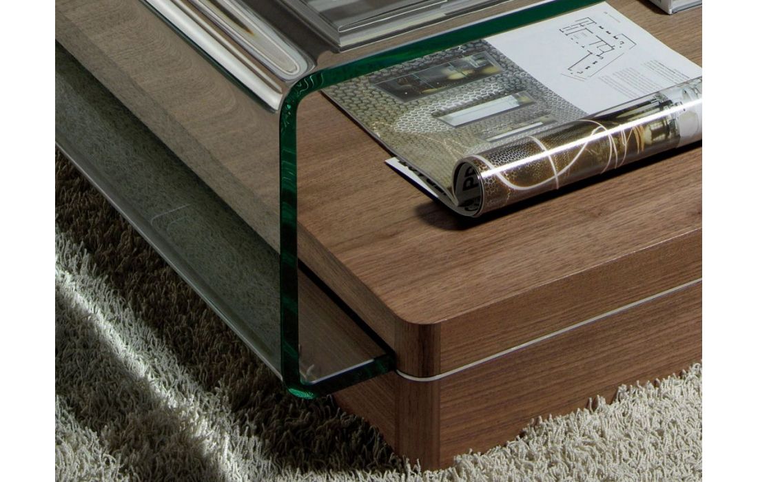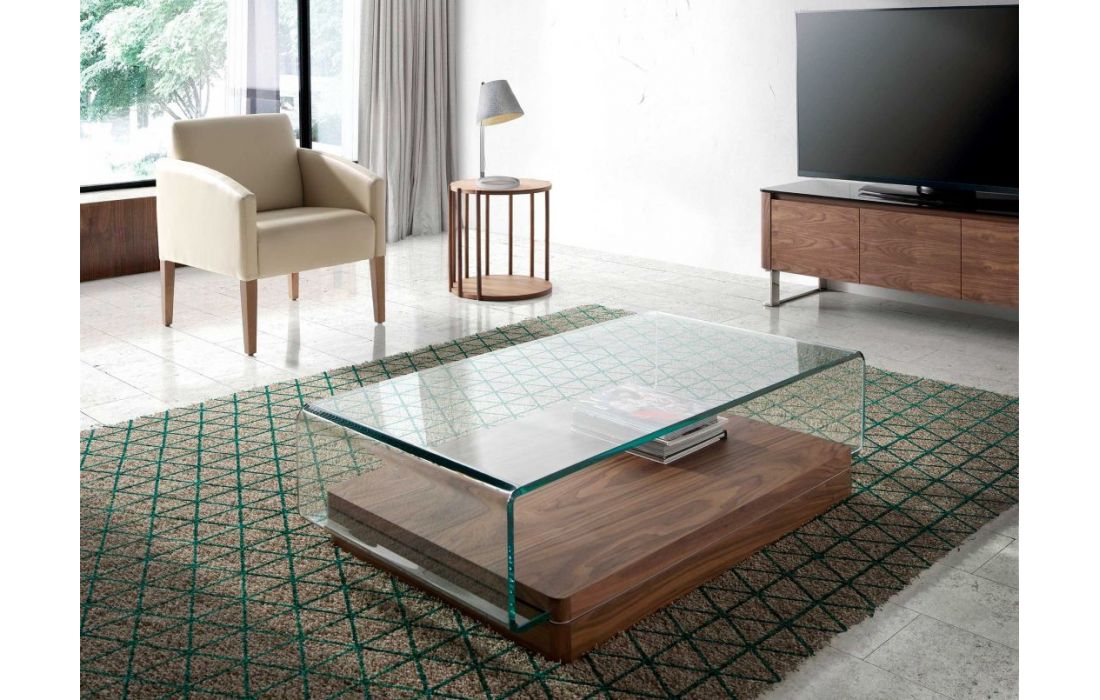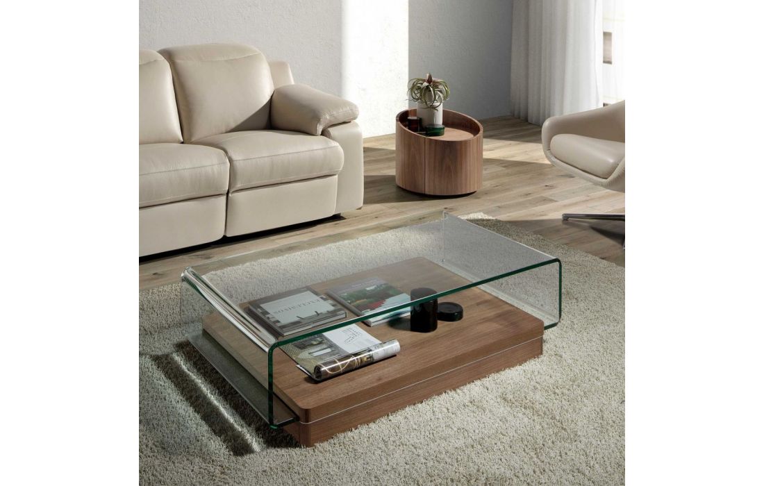 Modern rectangular coffee table with tempered glass top and natural walnut MDF legsRecipient :