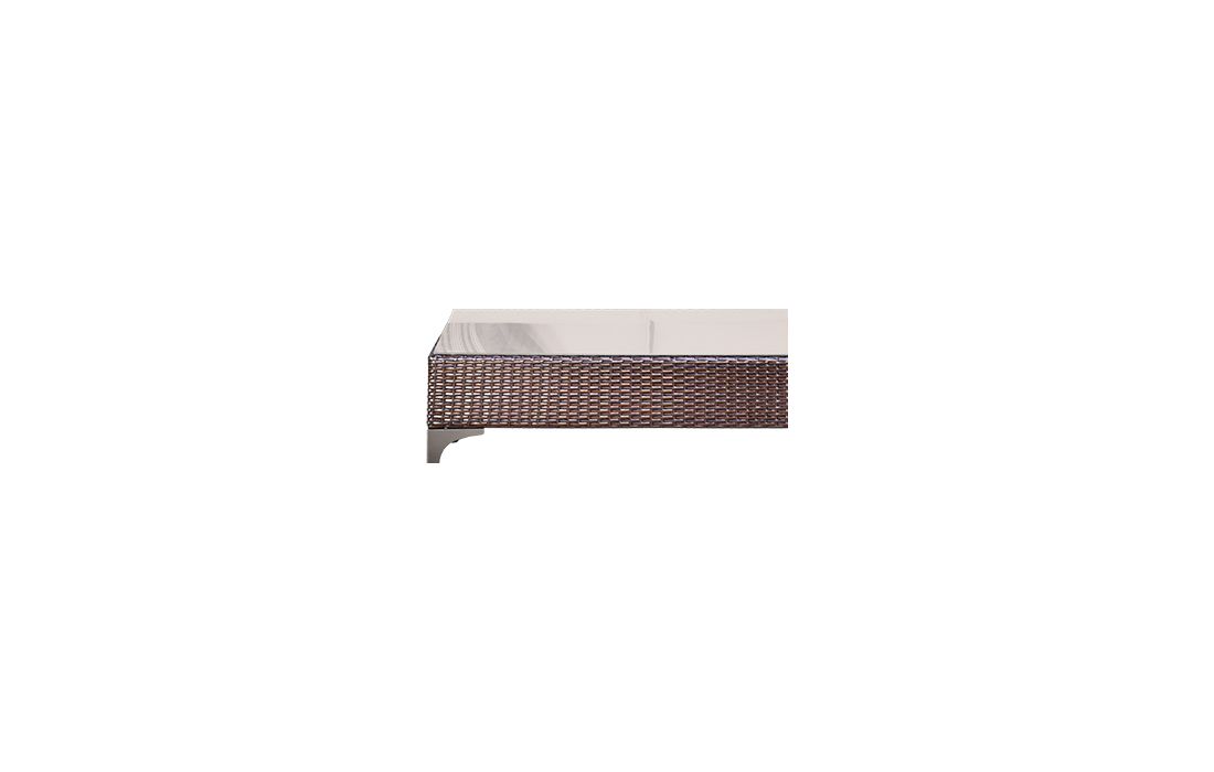 Rectangular coffee table in dark brown wicker and transparent glass top