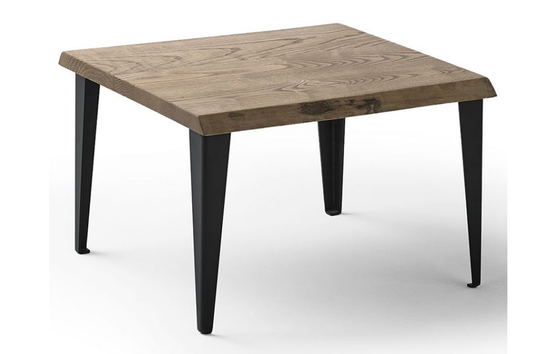 Coffee table topped with ash wood masonry with 3 types of finish, metal feet with white or black option.