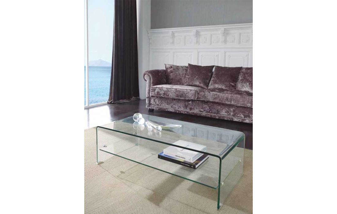 Coffee table in tempered glass 12mm with wheels