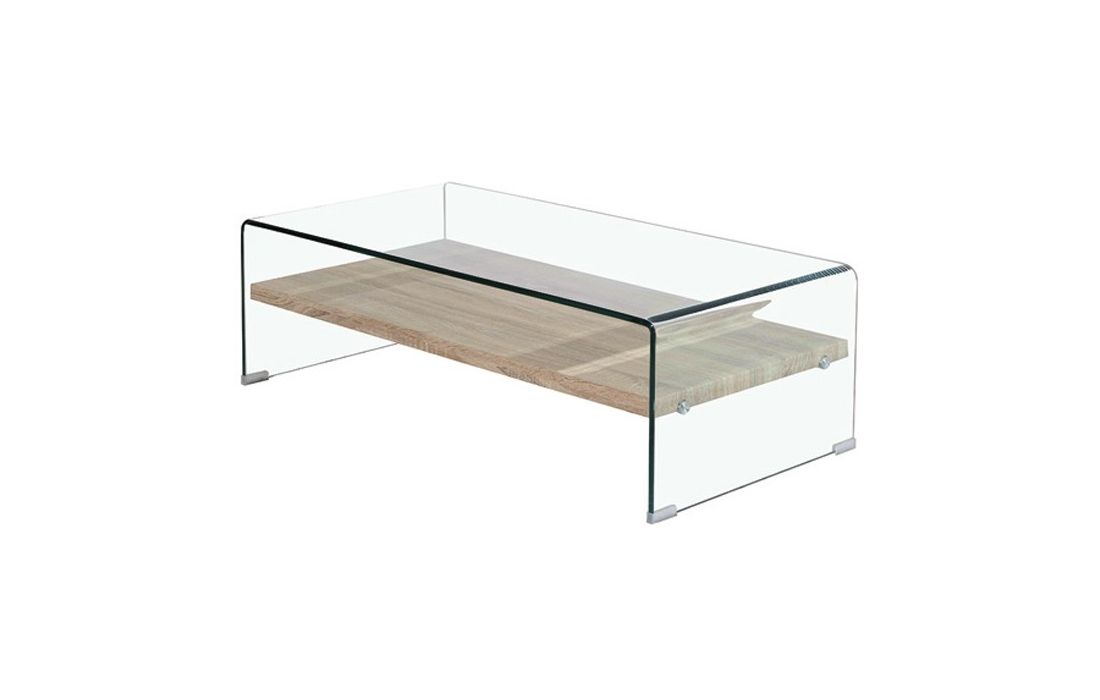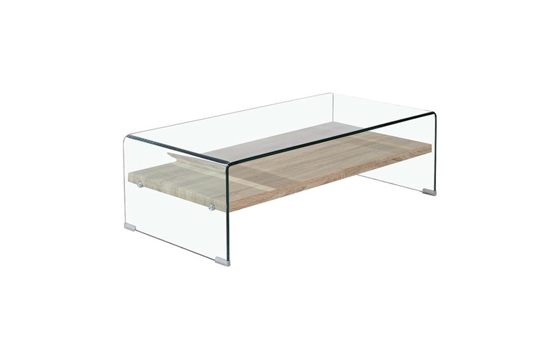 12mm tempered glass coffee table with wooden shelf.