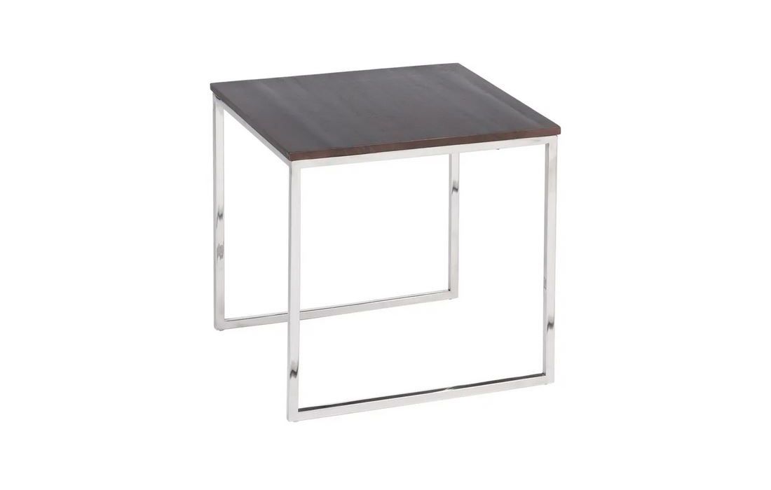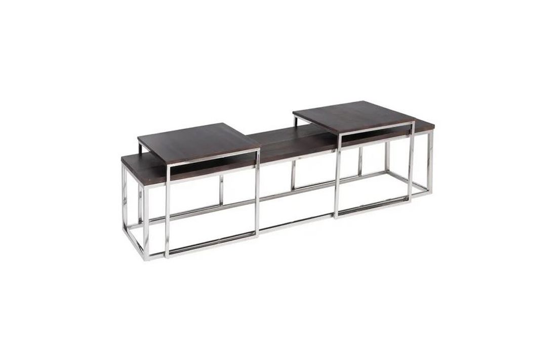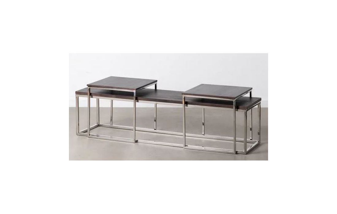 Set of 3 coffee tables with silver metal structure and mango wood top