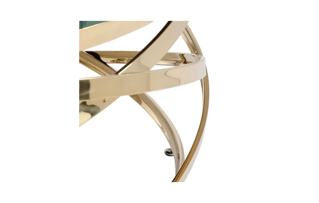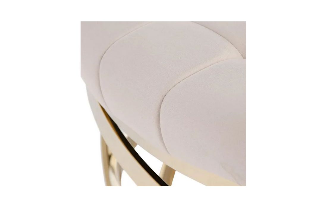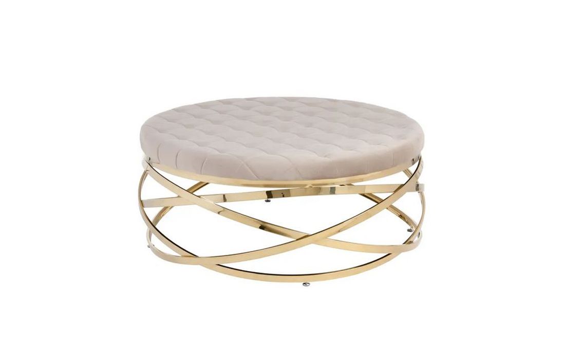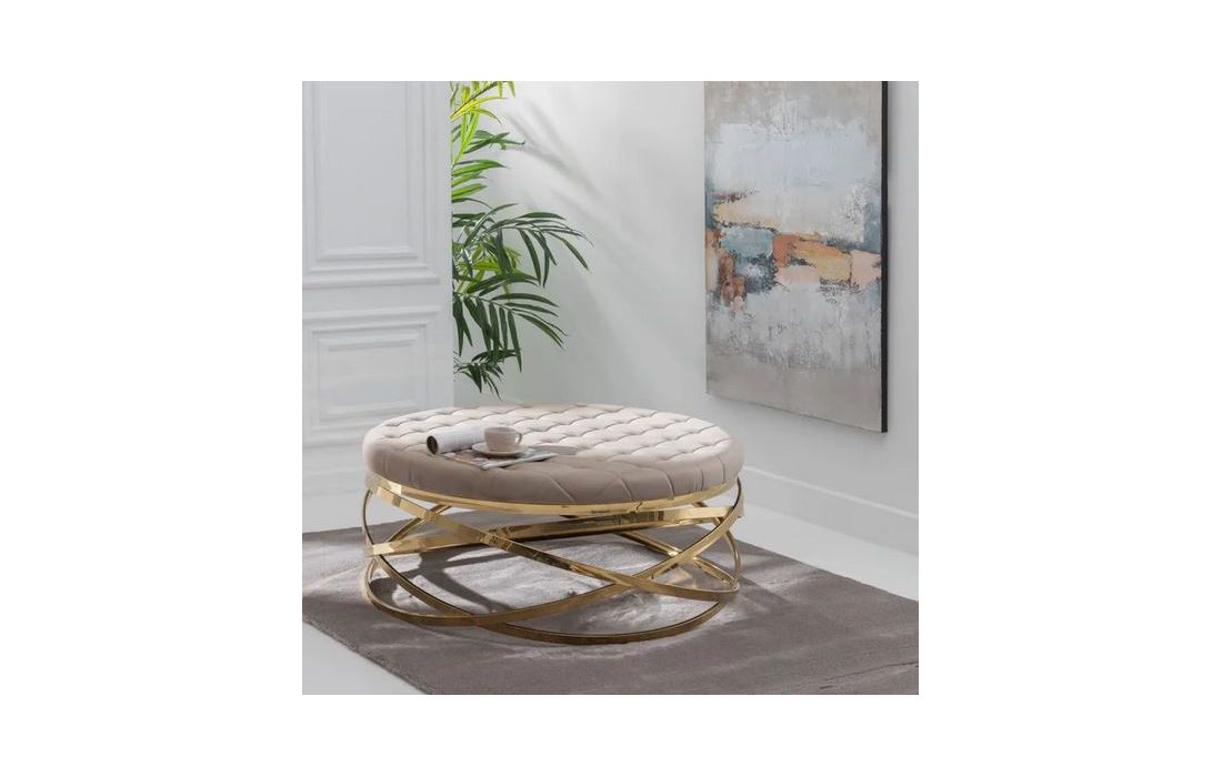 Coffee table with structure in golden stainless steel and top in taupe fabric