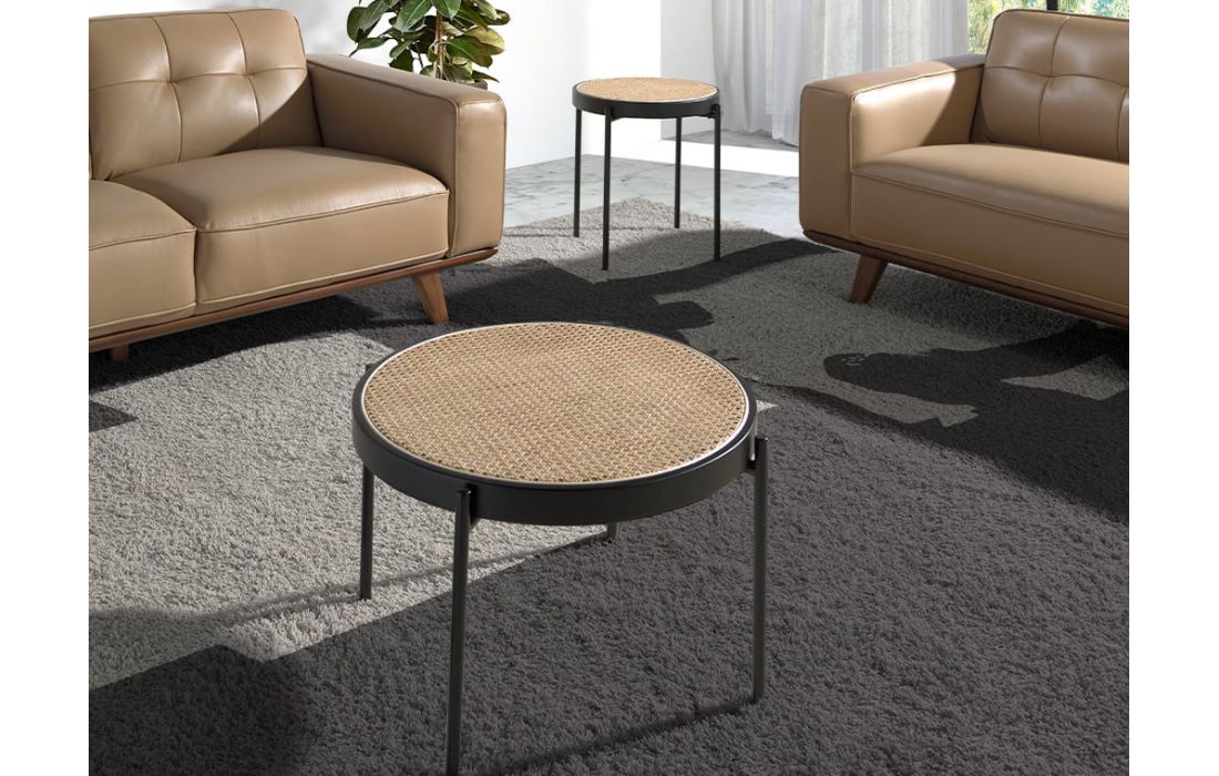 Modern design coffee table, made of MDF, an elegant wicker top and stainless steel legsRecipient :