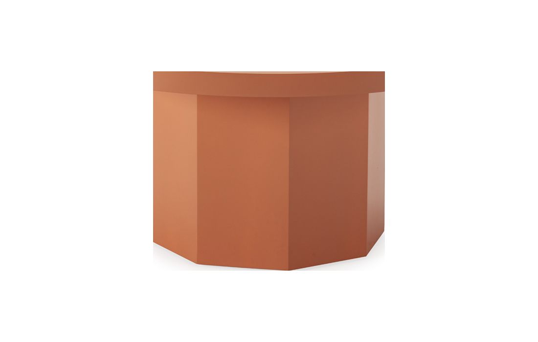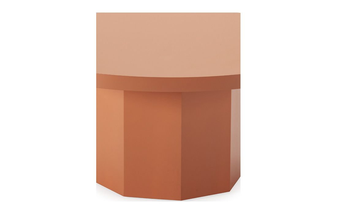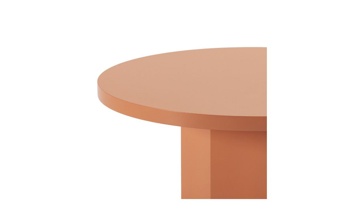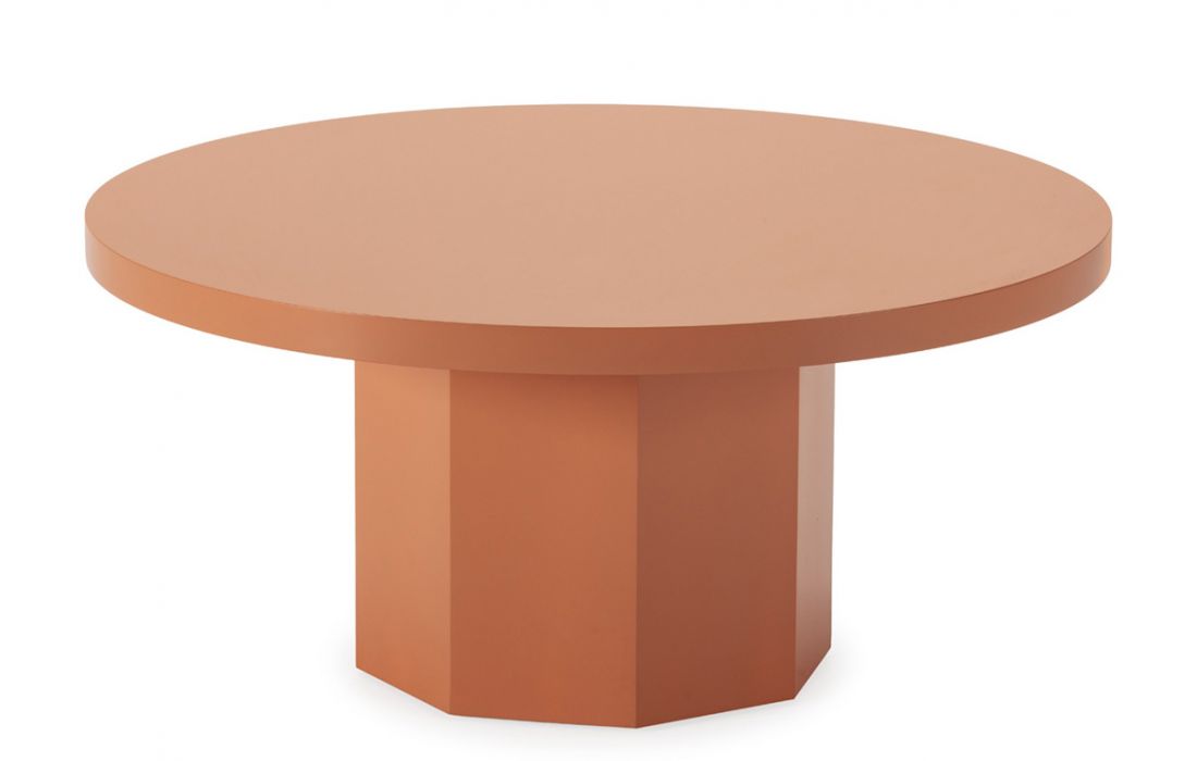 Round coffee table in terracotta-colored lacquered woodDelivery timeDimensions in cm