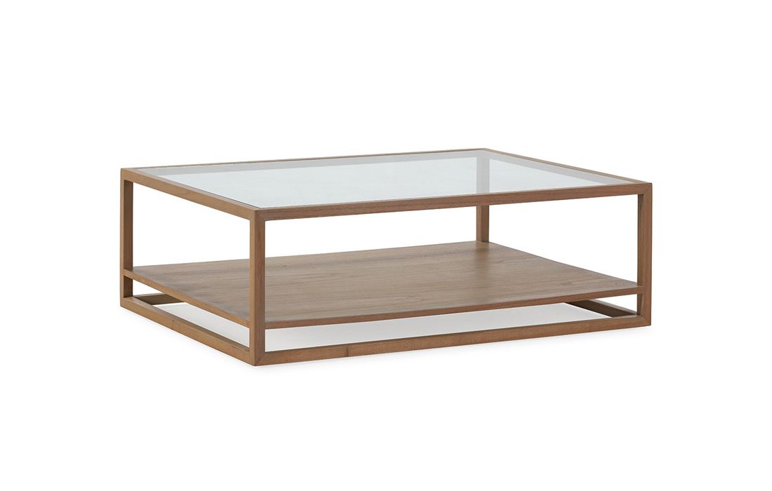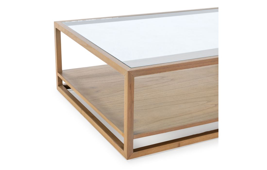 Rectangular coffee table in natural cedar wood and glass topDelivery timeDimensions in cm