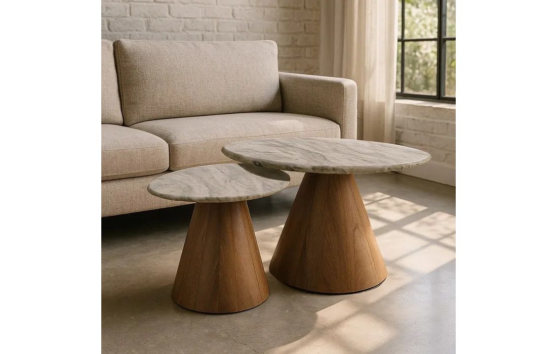 Coffee table set in mango wood and marble with a modern styleRecipient :