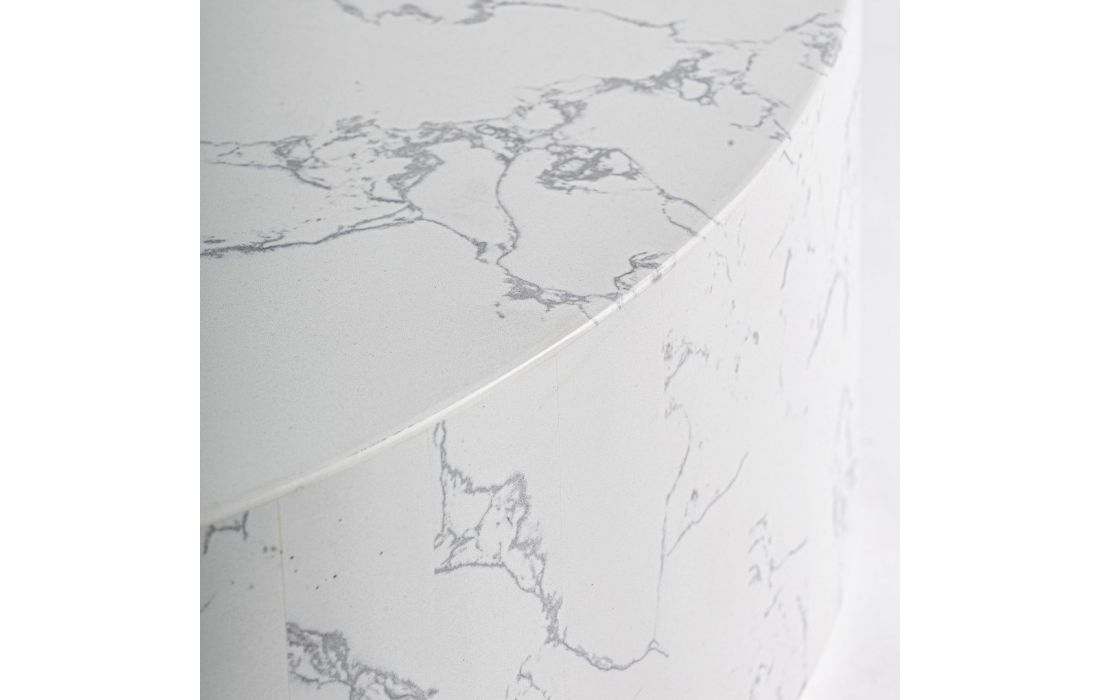 Coffee table made of sintered stone, it stands out for its smooth surface and rounded shapeRecipient :