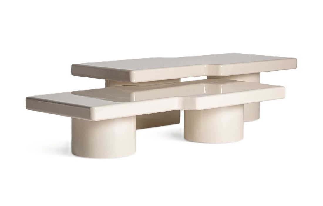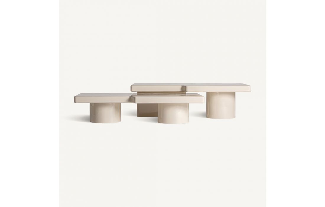 Coffee table, presented in a set of two pieces, stands out for its glossy finish and geometric design, made of MDFRecipient :
