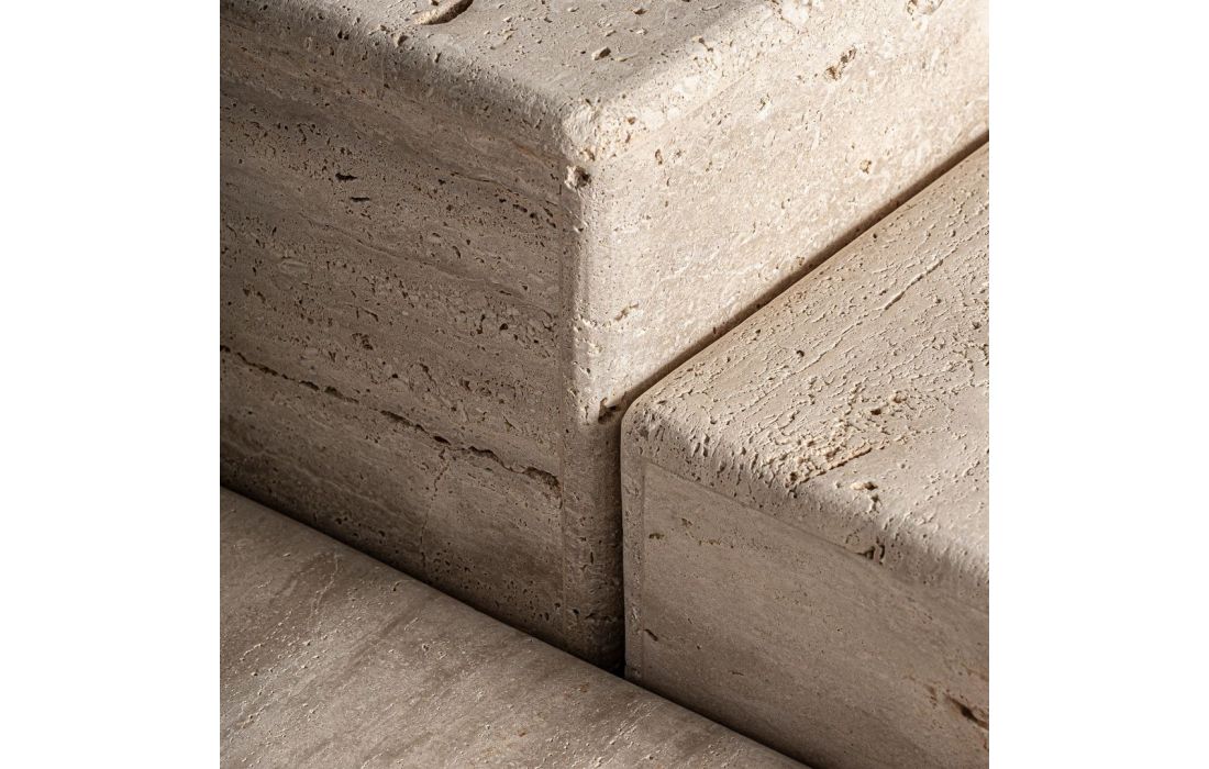 Coffee tables that combine simplicity and personality, made in travertine with its minimalist design with Art Deco influences, enhance any space with its natural texture and serene presenceRecipient :