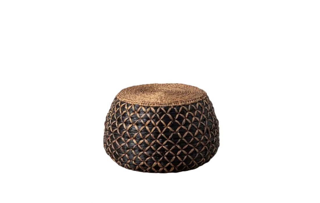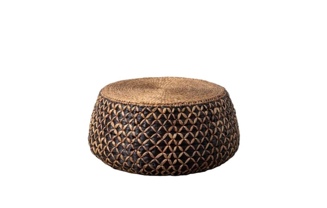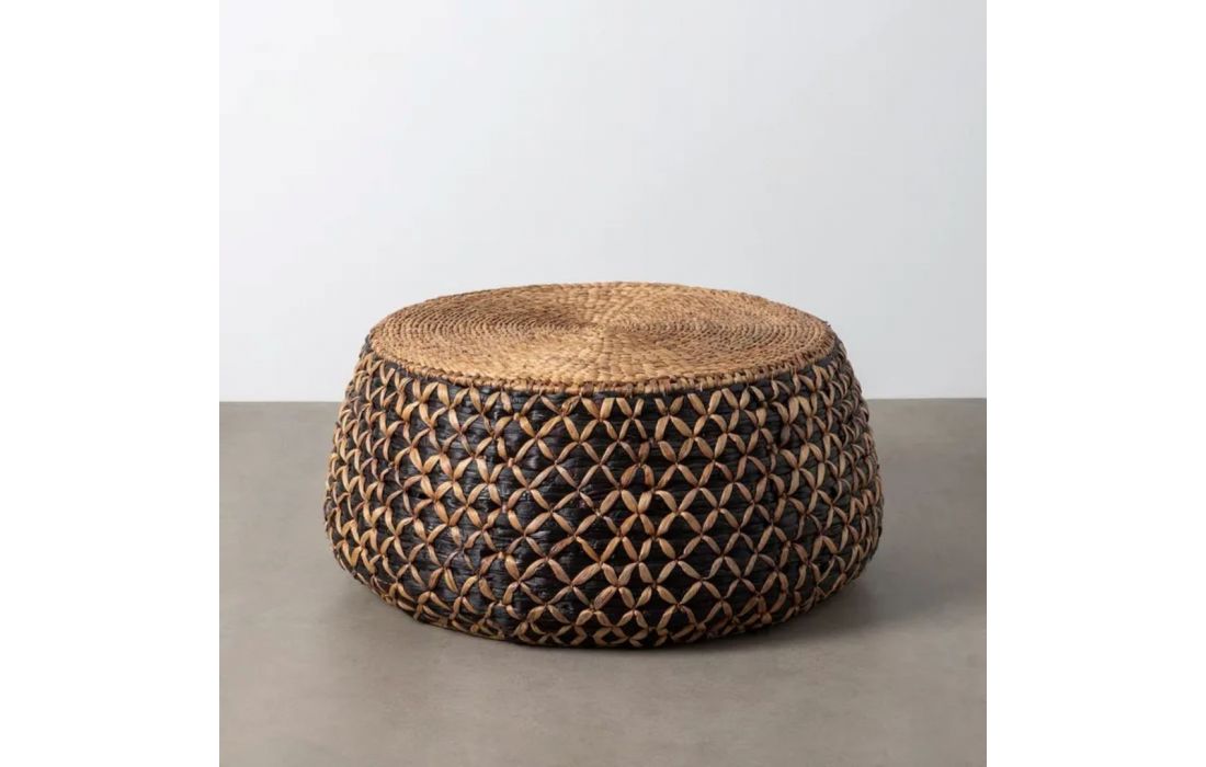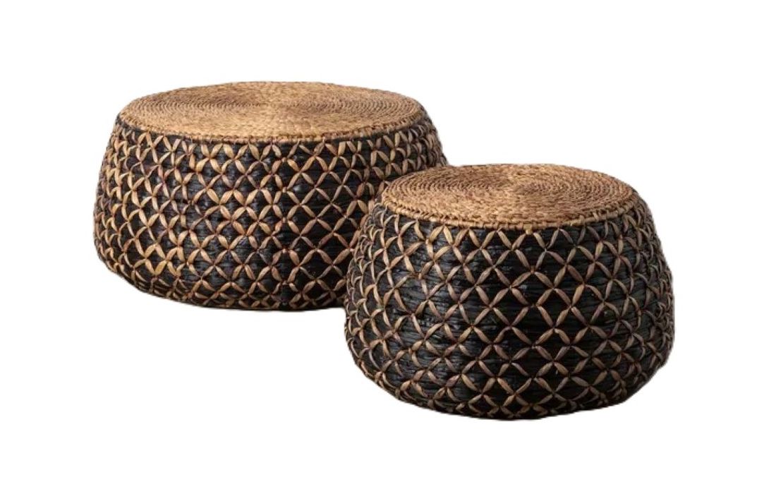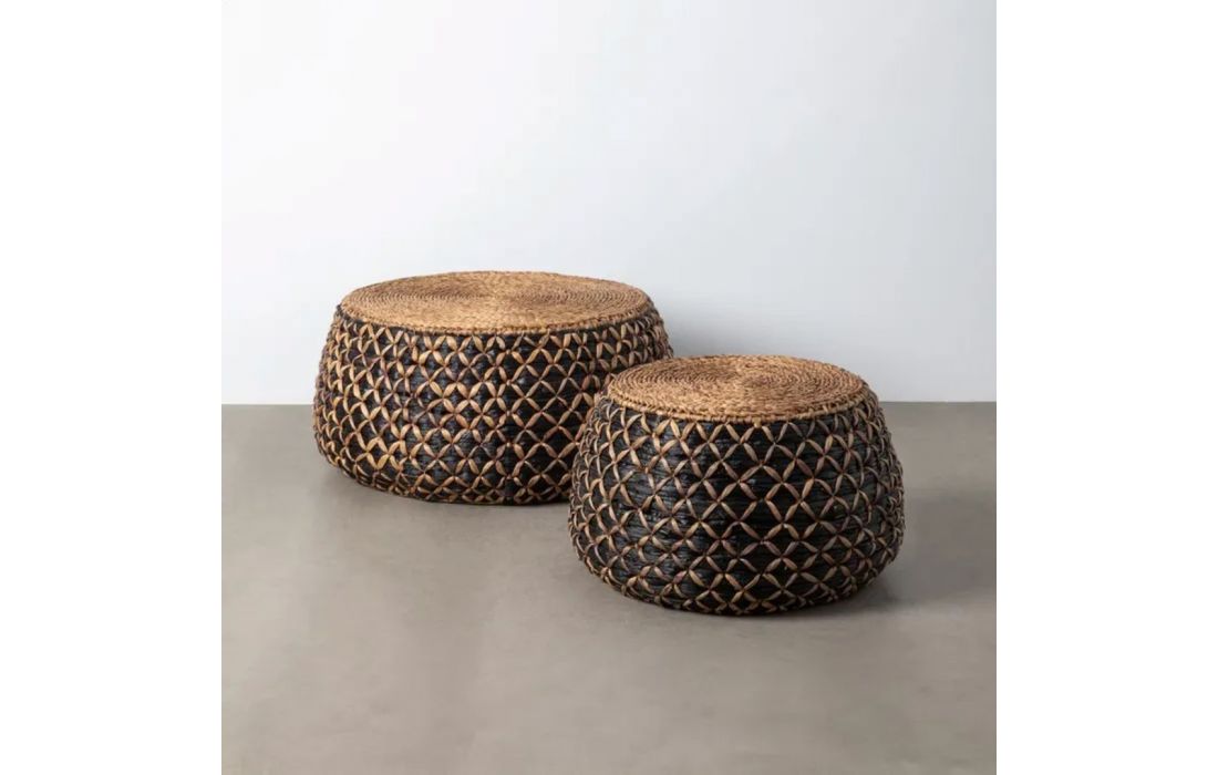 Set of coffee tables with handcrafted design and rounded shapes made of braided water hyacinthRecipient :