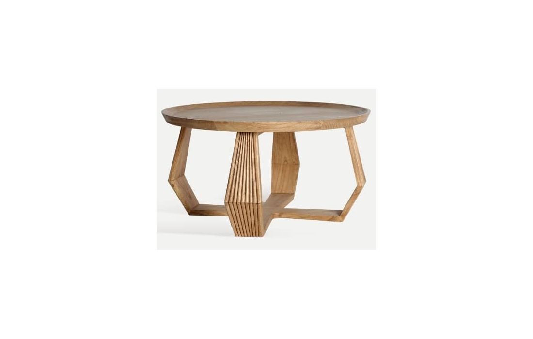 The BUSHEY wooden coffee table, with its round structure and geometric base, provides a modern and original design, ideal for the center of the living room.