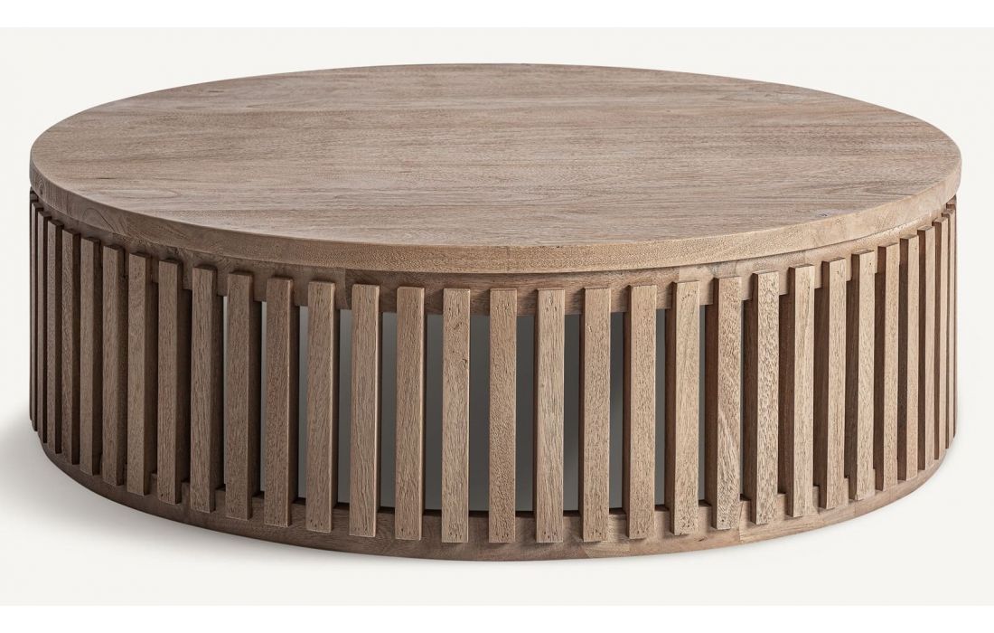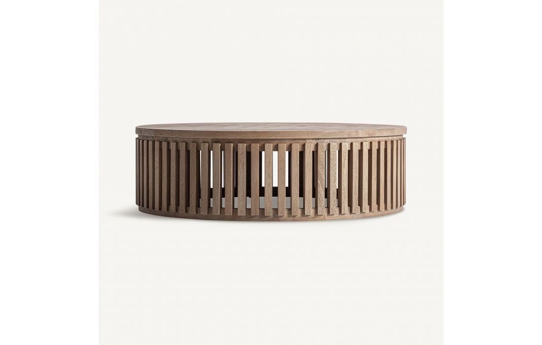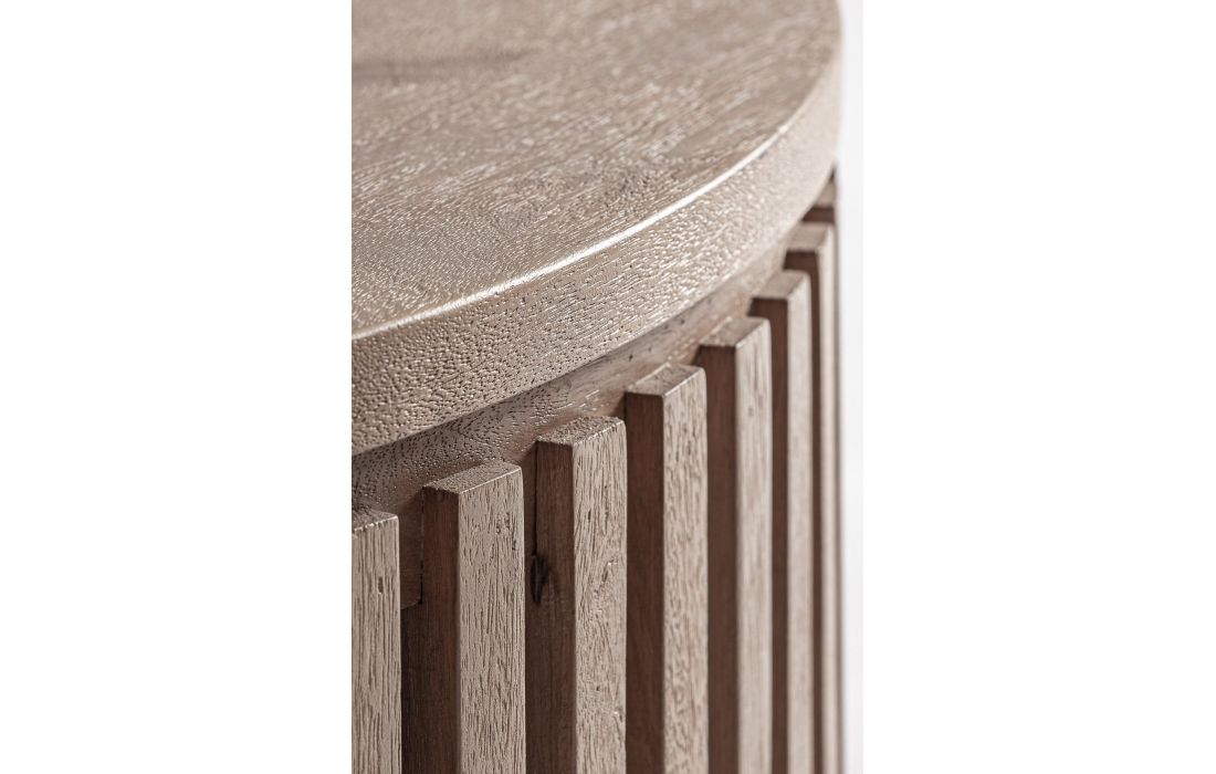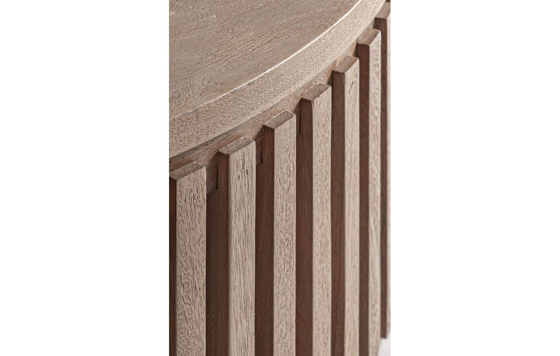 The GÀBIA CENTER TABLE is a piece that exudes order, calm, and precision.Its structure of vertical slats creates a play of light and shadow that evokes contemplative architecture: a serene geometry that invites you to take a second look. Made of mango wood with a sandy finish, it is sincere and unpretentious.